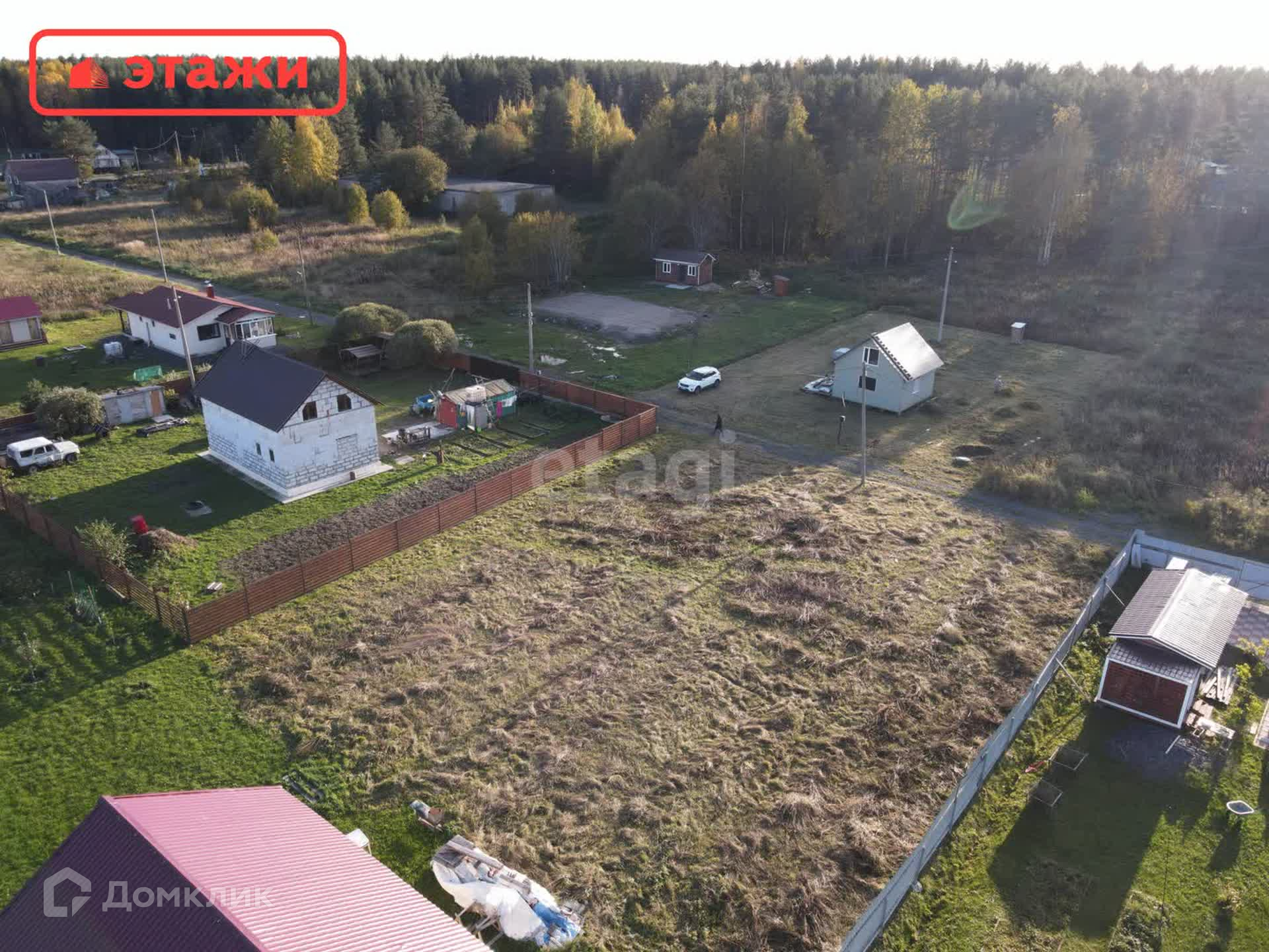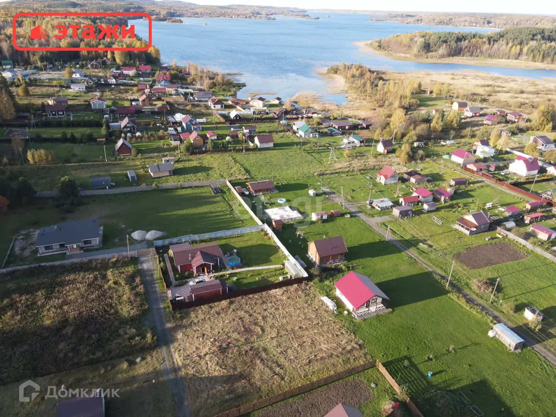 Участок ровный, правильной прямоугольной формы, открытое солнечное место до береговой линии озера Пертозеро менее 200 метров, въезд со стороны проезжей части ул. Октябрьской, со стороны асфальтированной дороги.