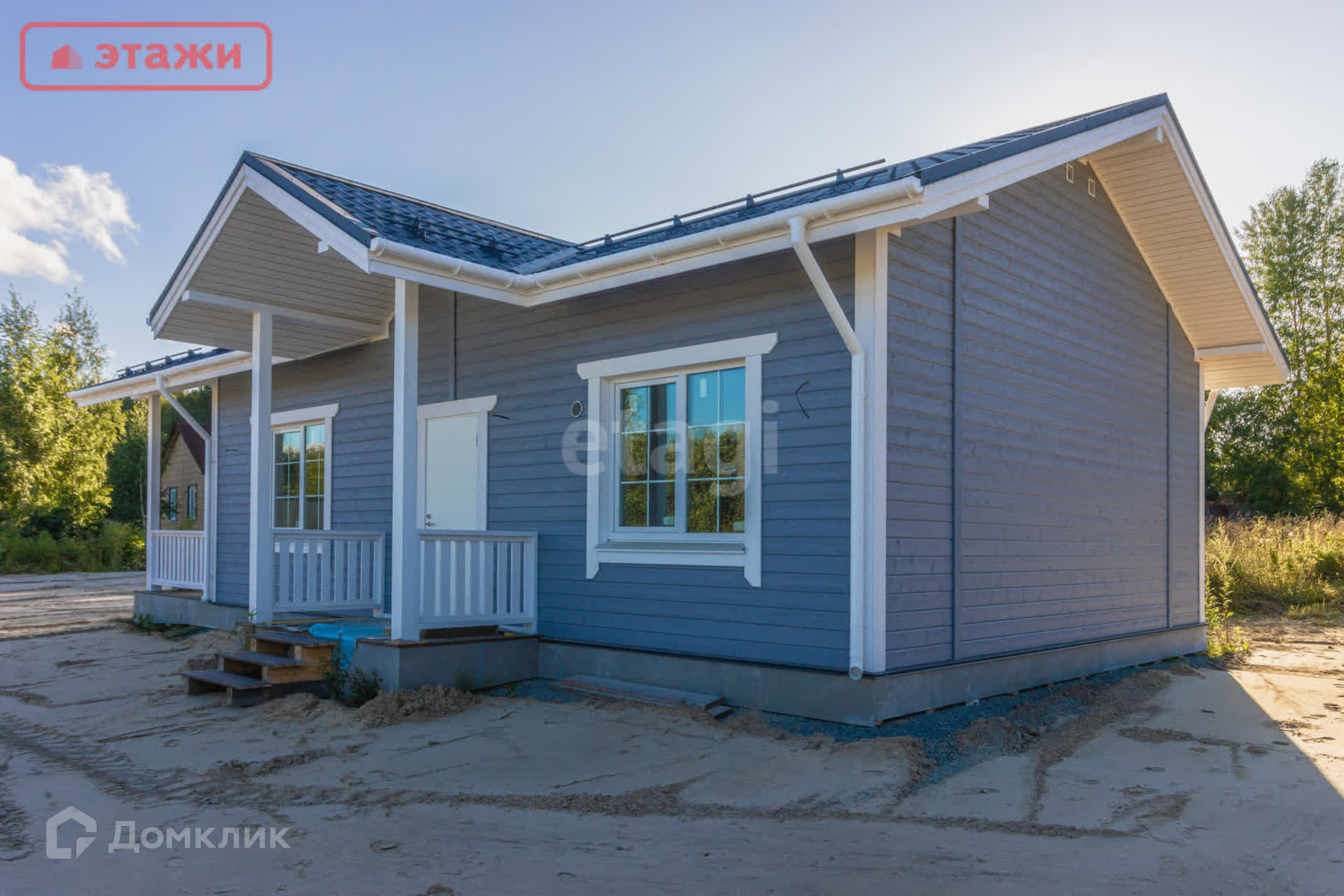 Дополнительно для визуализации уже возводимого дома к рендеру - отрисованной модели - представлены фото объекта, выполненного подрядчиком в 2023 году. Указанный объект к продаже не предлагается.