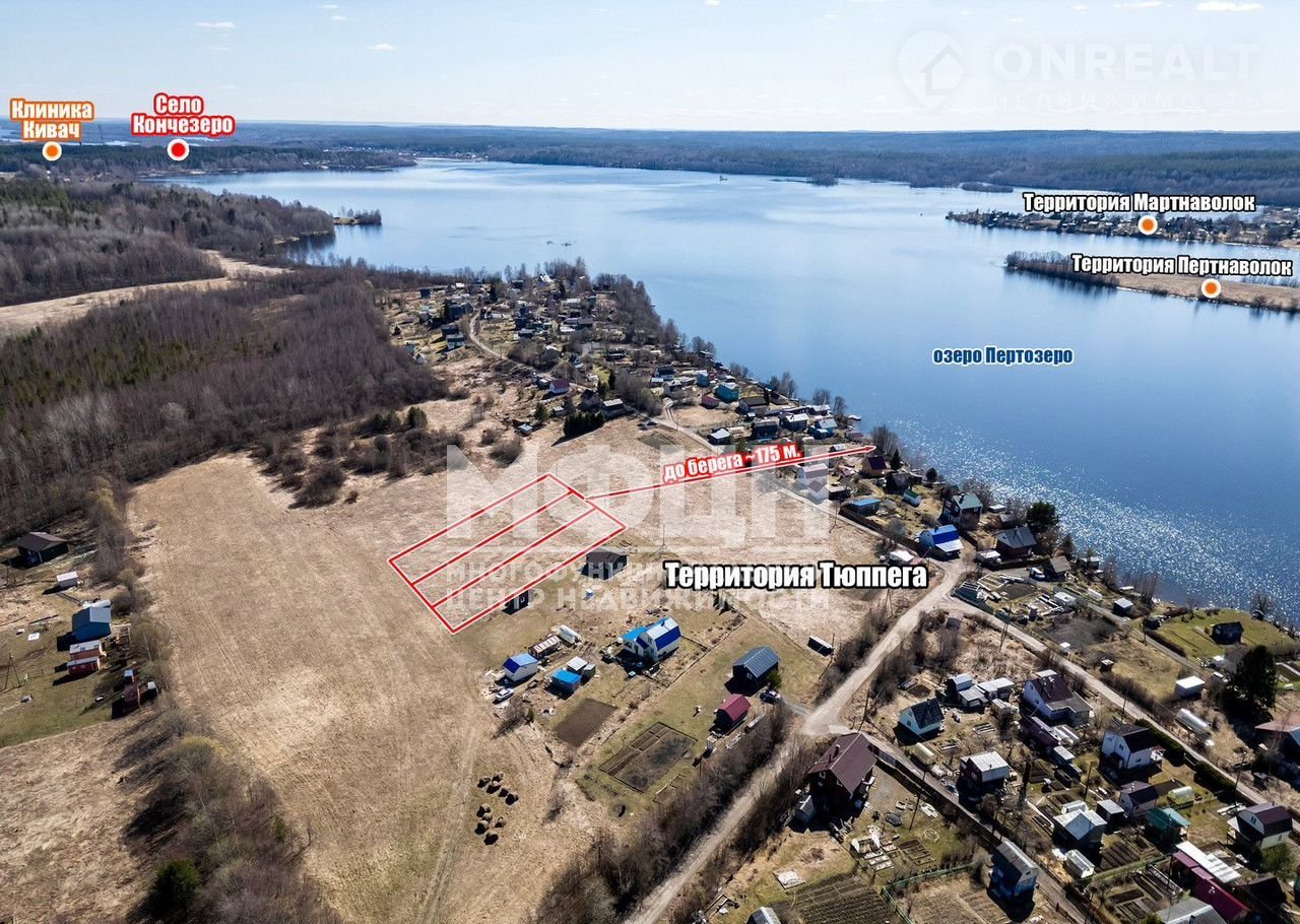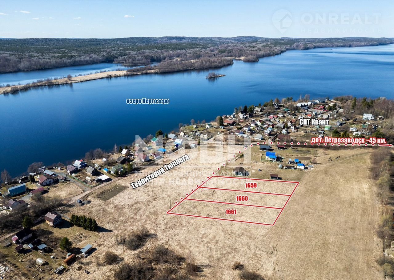 Участки расположены в 50 км от Петрозаводска у центральной дороги в небольшой деревне Тюппега, в 5 минутах езды от с. Кончезеро, где есть кафе, продуктовые магазины в том числе "Пятёрочка", Веkkеr, Оzоn, Wildbеrriеs, почта, амбулатория и всё необходимое для комфортного проживания.