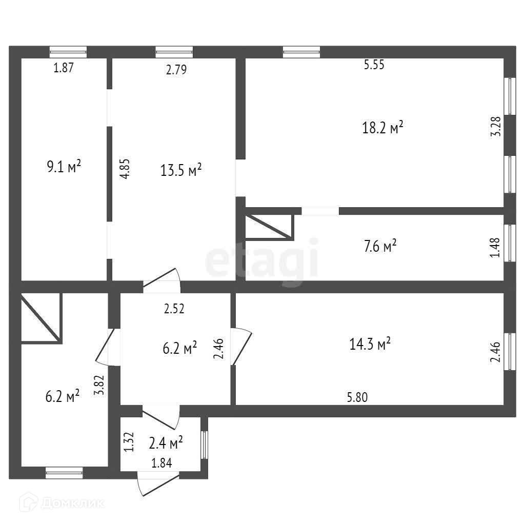 Общая площадь 54.6 м2