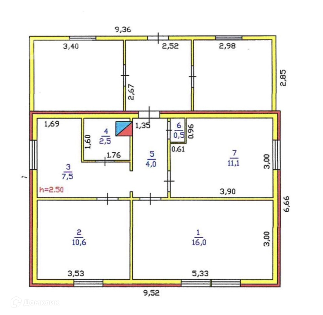 Высота потолков 2.5 м