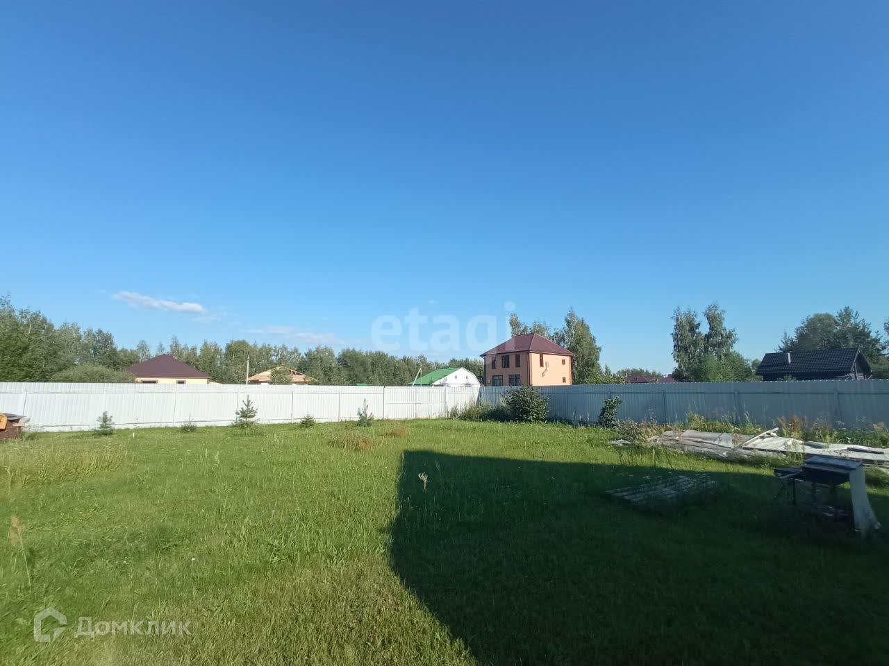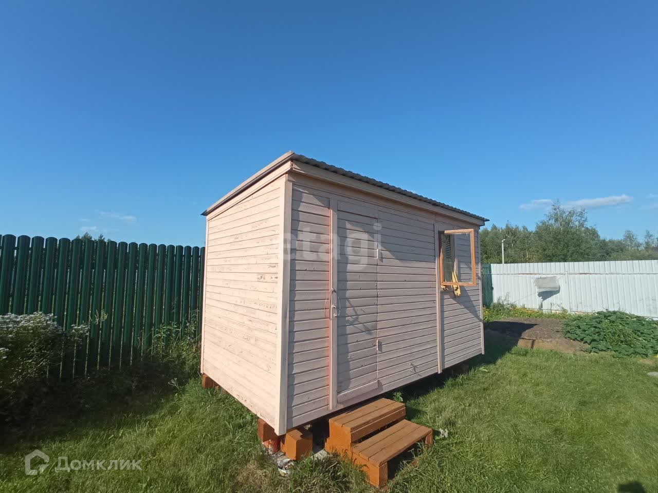 На участке также имеются деревья, включая плодовые, и ягоды. Для удобства есть теплица и бытовка.