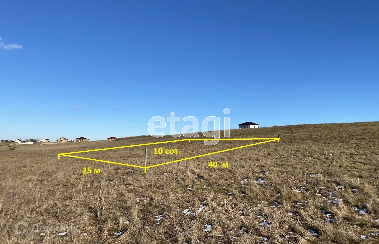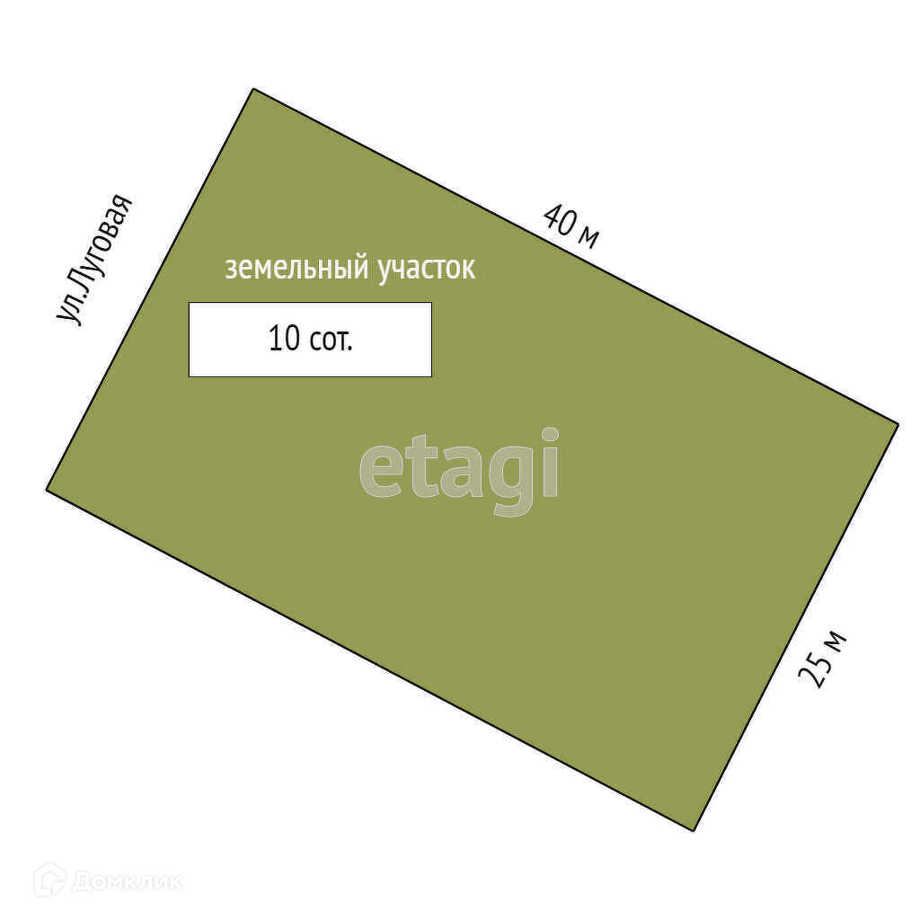 Земельный участок общей площадью 10 соток, ровной прямоугольной формы. Размеры участка 25 метров в ширину, 40 метров в длину.