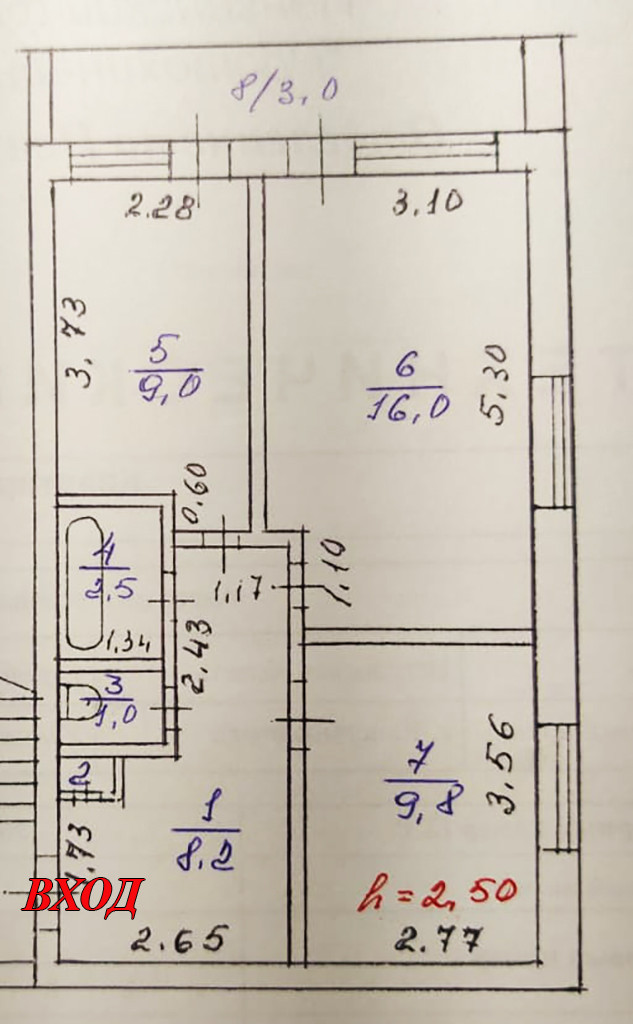 Высота потолков 2.5 м
