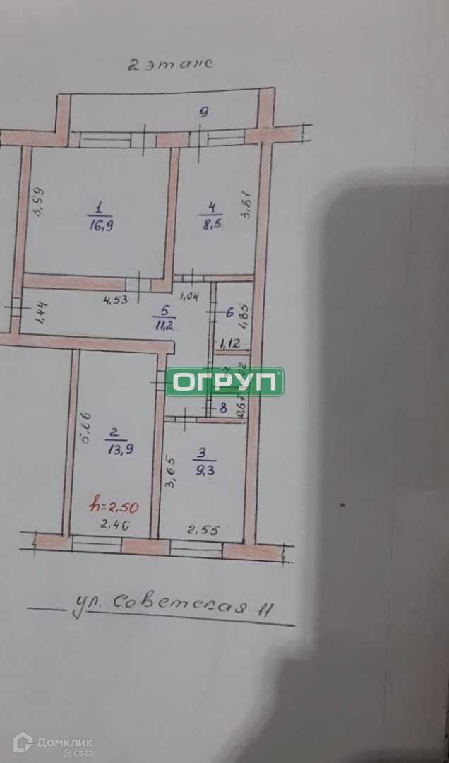 3-комнатная квартира, 63.7 м2, этаж 2 / 2, на продажу в селе Константиновка, Советская улица, 11