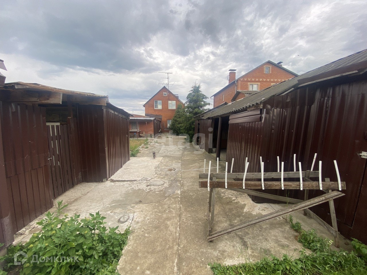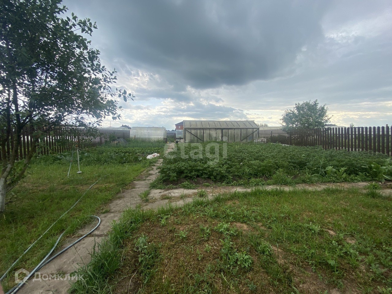 На участке имеются хозпостройки, беседка, теплицы, хозблок 40м².