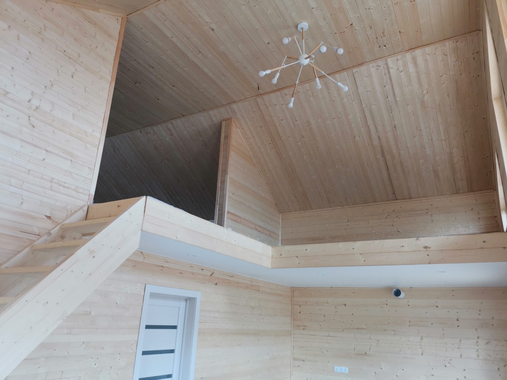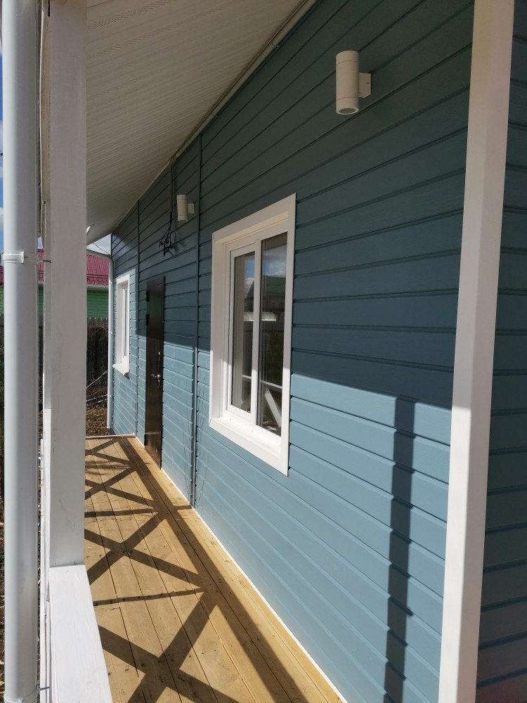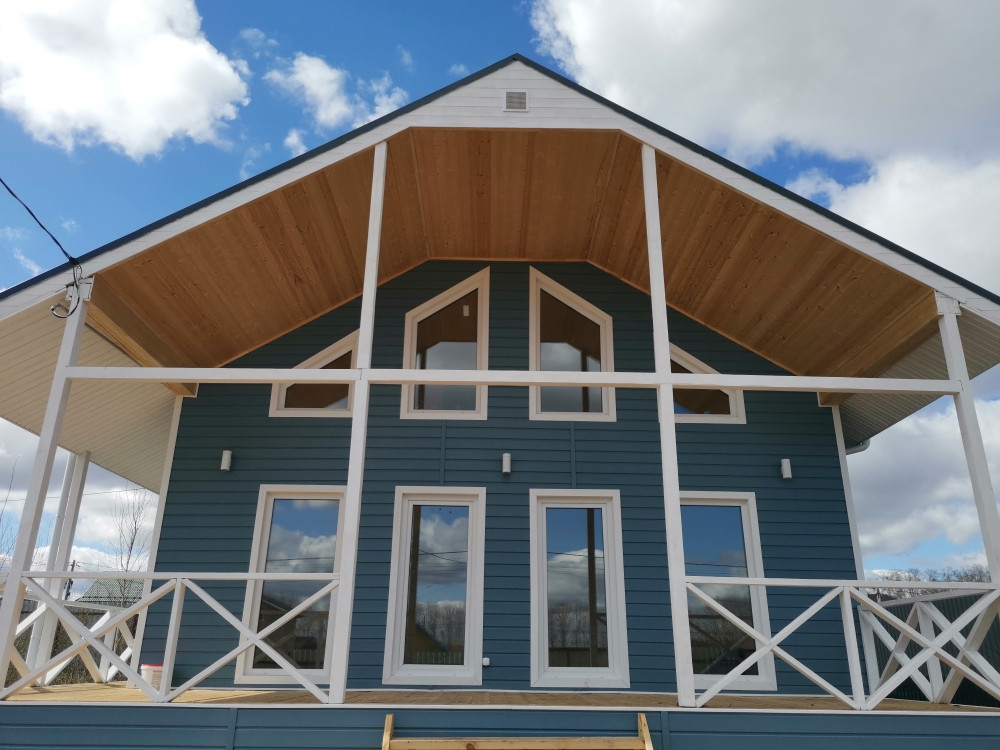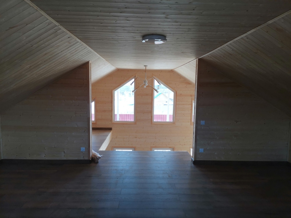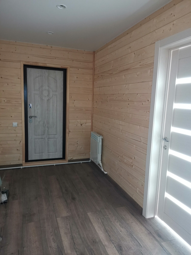 Дом каркасный на свайно-винтовом фундаменте, S-120кв.м. Утепление - мин.вата 150мм, электричество - 15кВт подключено и разведено по дому, отопление - электрокотел, вода - скважина, канализация - септик (2+2 кольца), идет газификация поселка. Современная планировка.  В доме полностью выполнена отделка: пол- ламина, натяжные потолки, межкомнатные двери, сантехника.