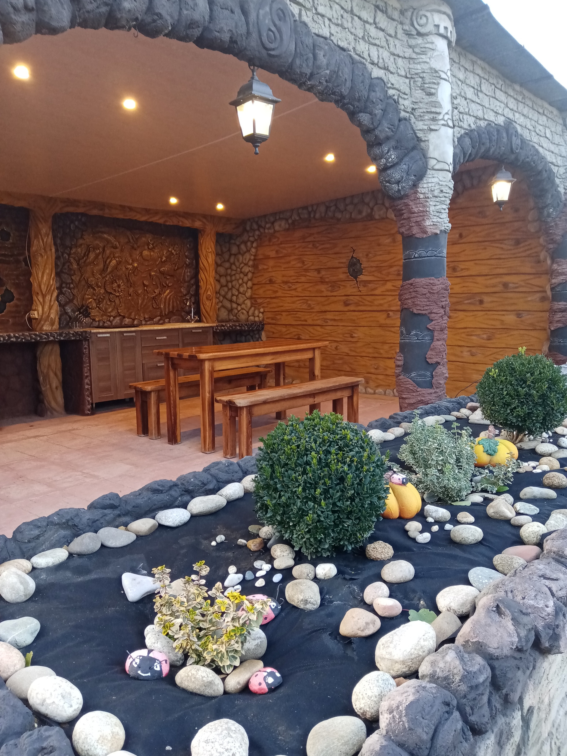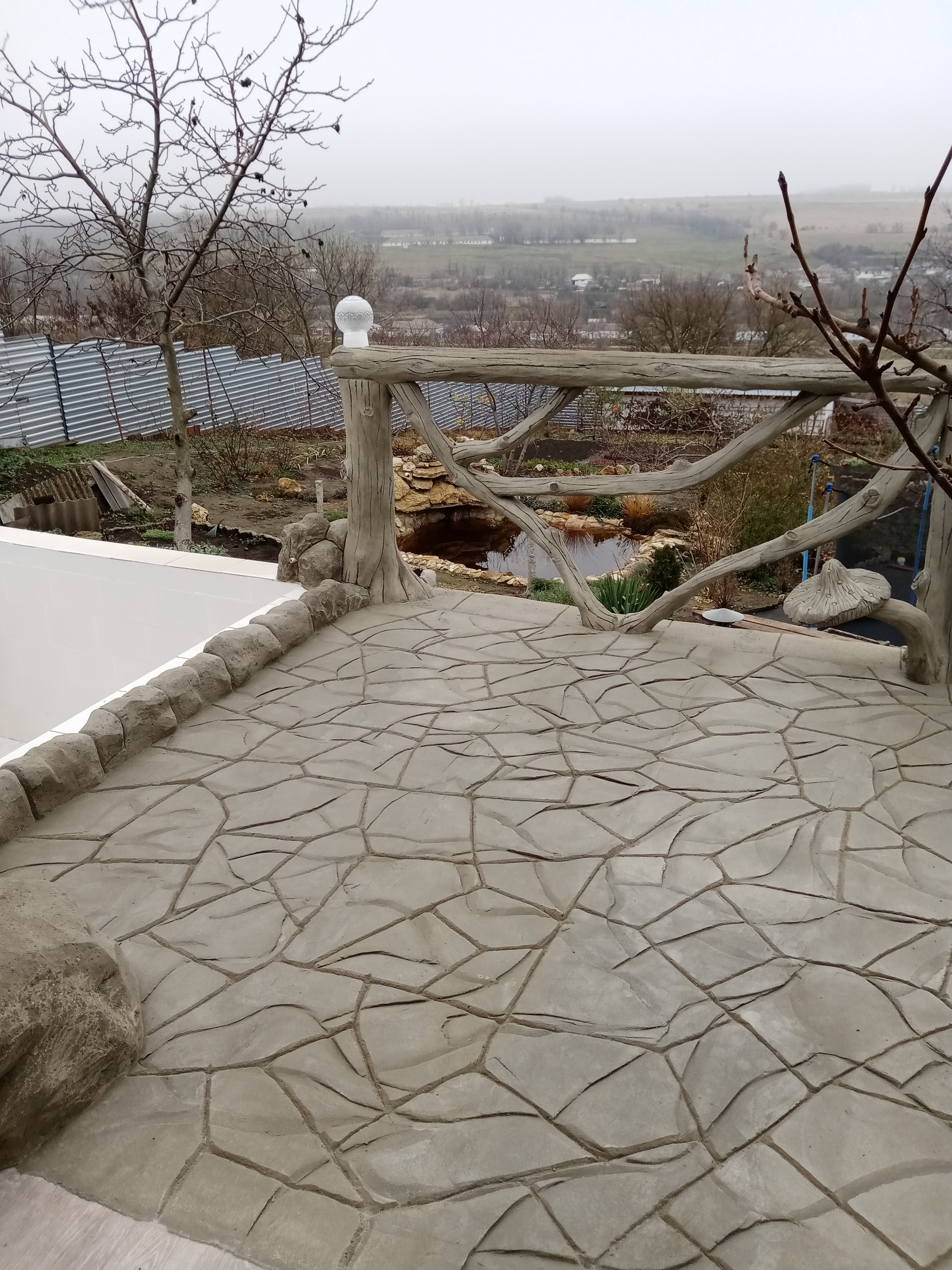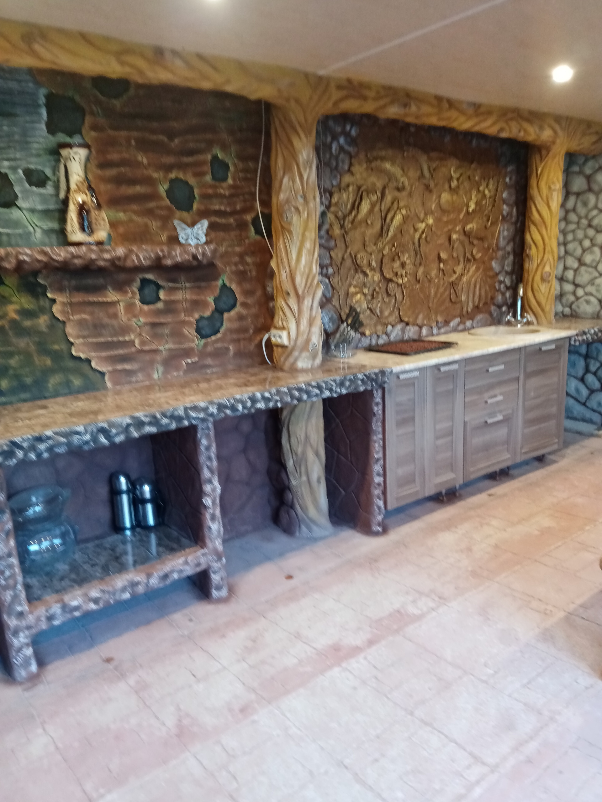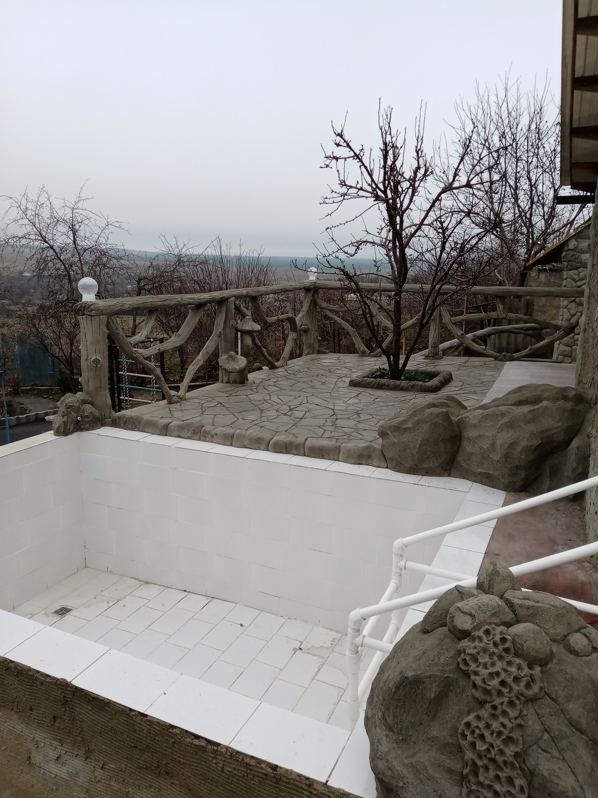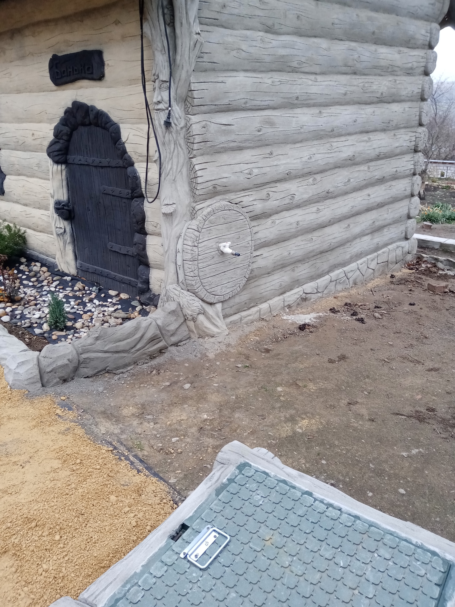 баня(вся отделка стен барельефом из бетона также ручная работа....) бассейн для купания(ненужно ездить на пруд в любое время поплаваешь, на улице жара, а ты наслождаешься водой, особенно для деток это такое развлечение) ,