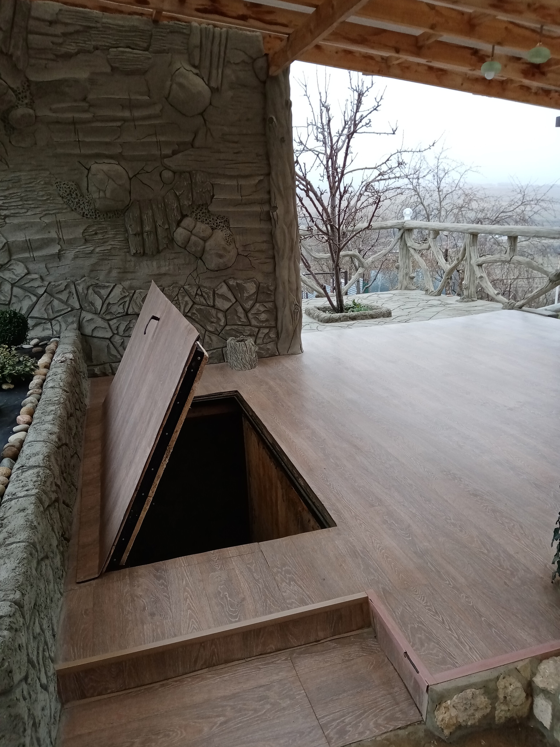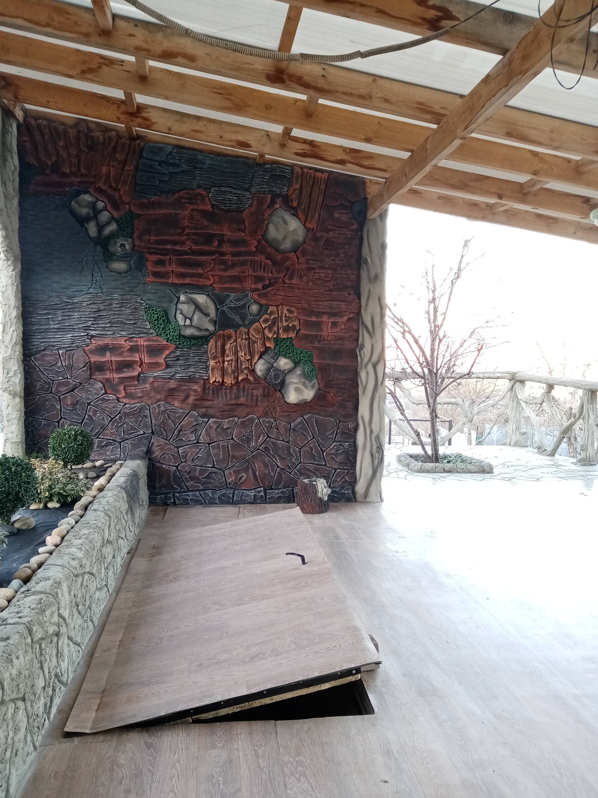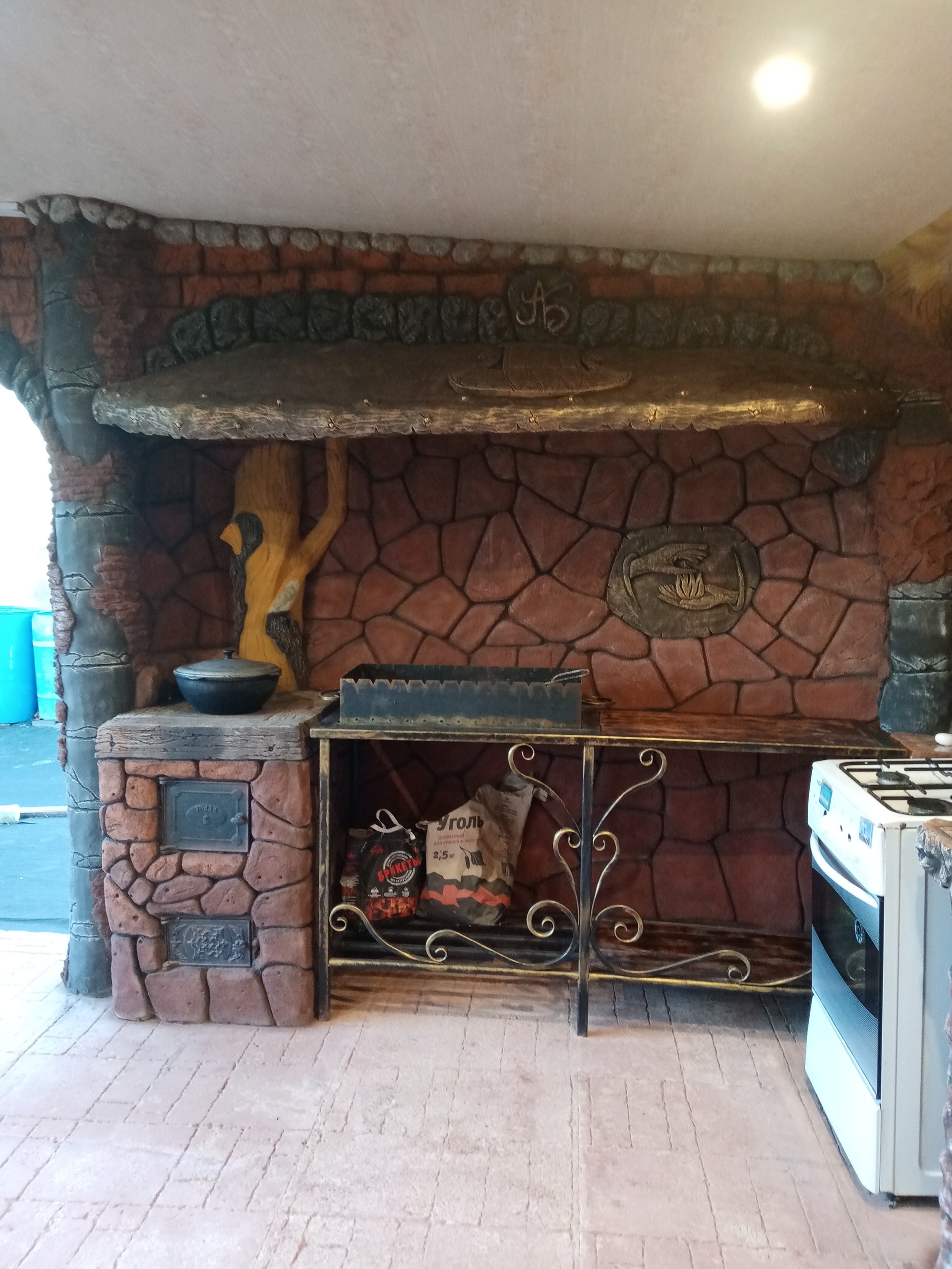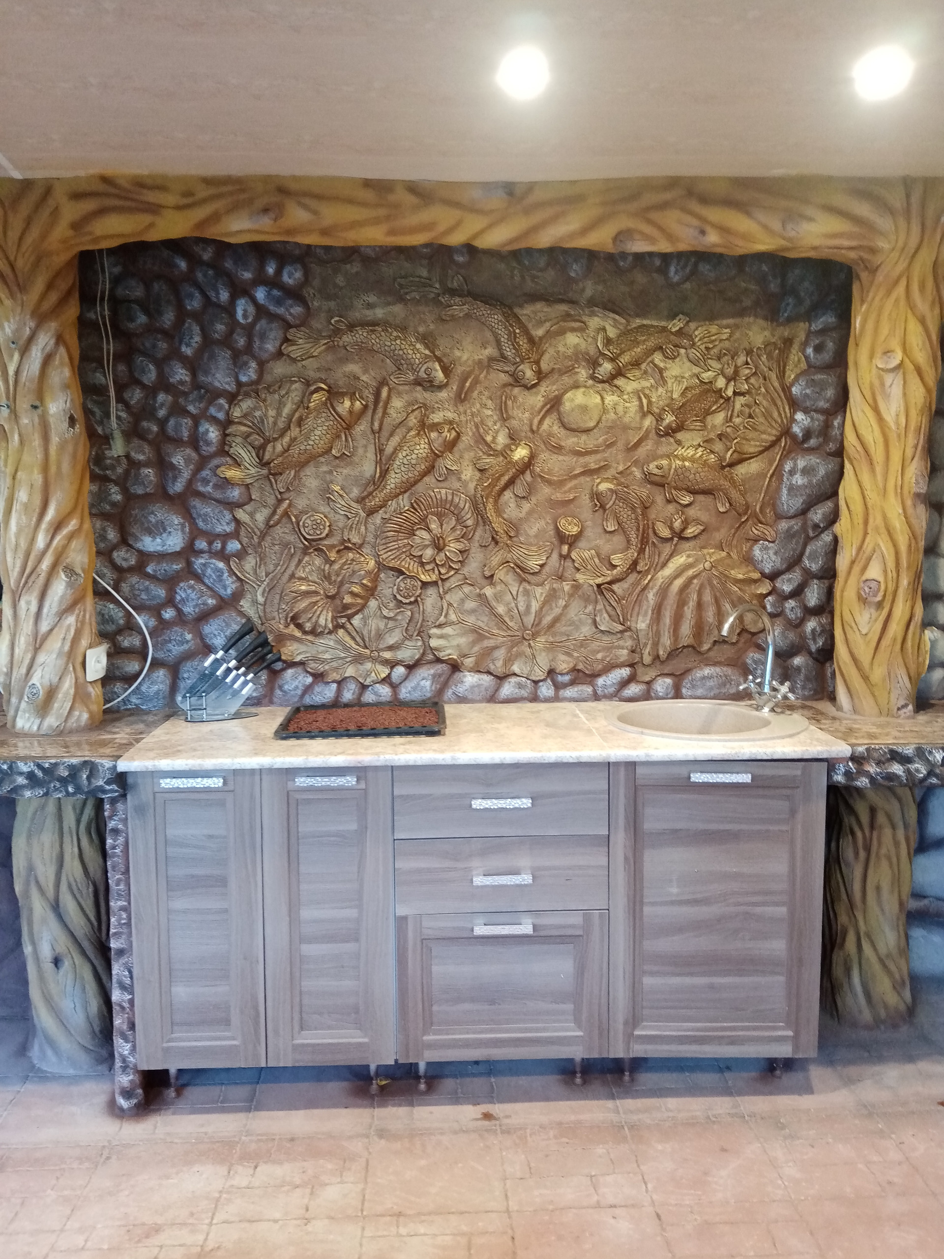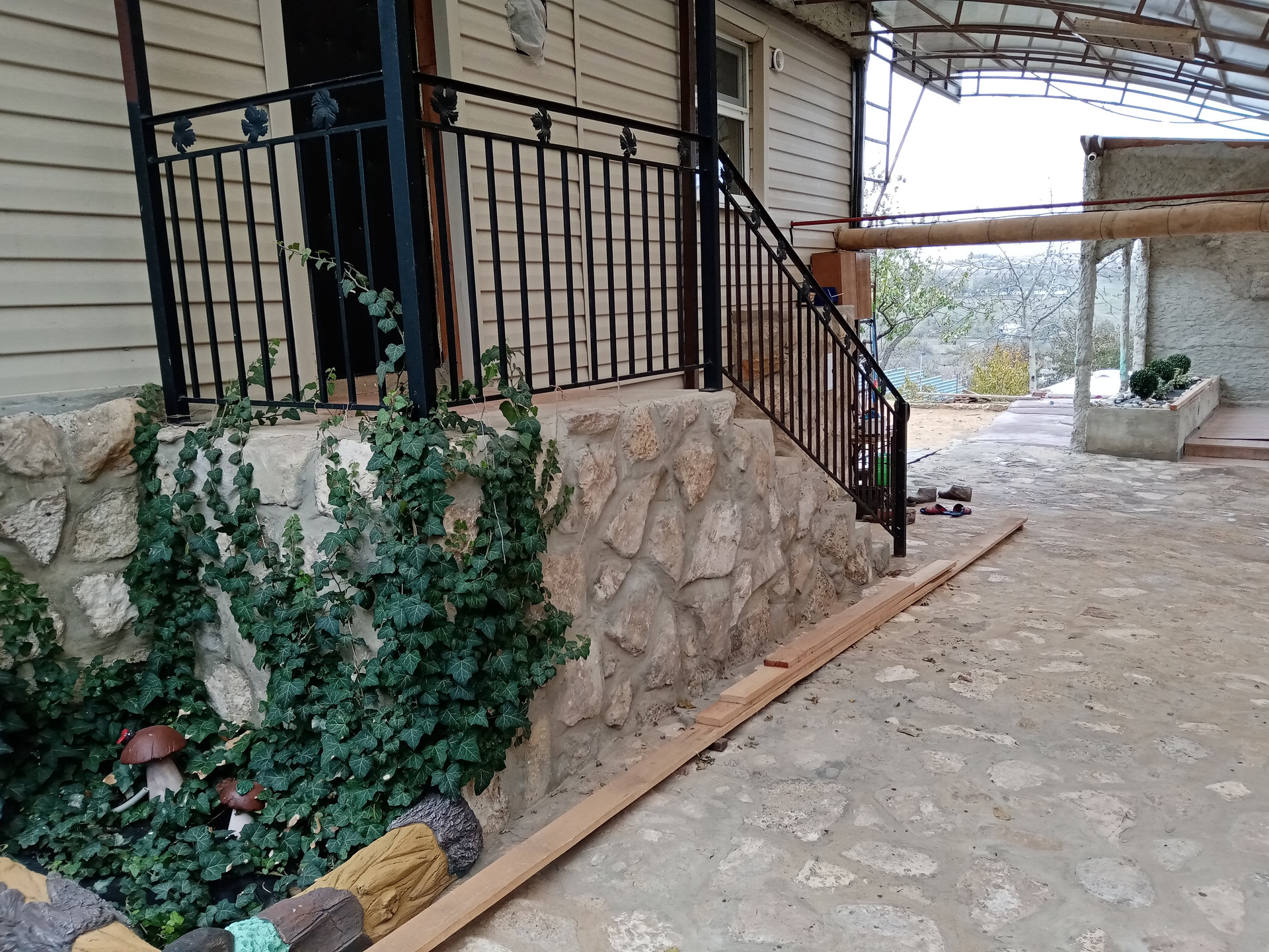 баня(вся отделка стен барельефом из бетона также ручная работа....) бассейн для купания(ненужно ездить на пруд в любое время поплаваешь, на улице жара, а ты наслождаешься водой, особенно для деток это такое развлечение) ,