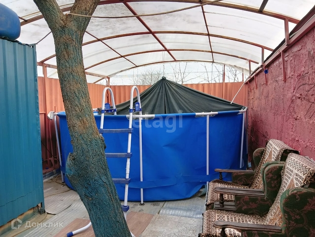 Участок 7,4 соток, обработан, посажены плодовые деревья и кустарники. На территории участка есть хозяйственные постройки, оборудованное место для отдыха, бассейн, летний душ, вольер для собак, кладовые помещения для инвентаря, большой погреб для солений.
