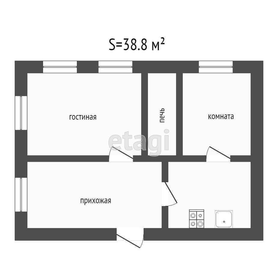 Общая площадь 38.8 м2