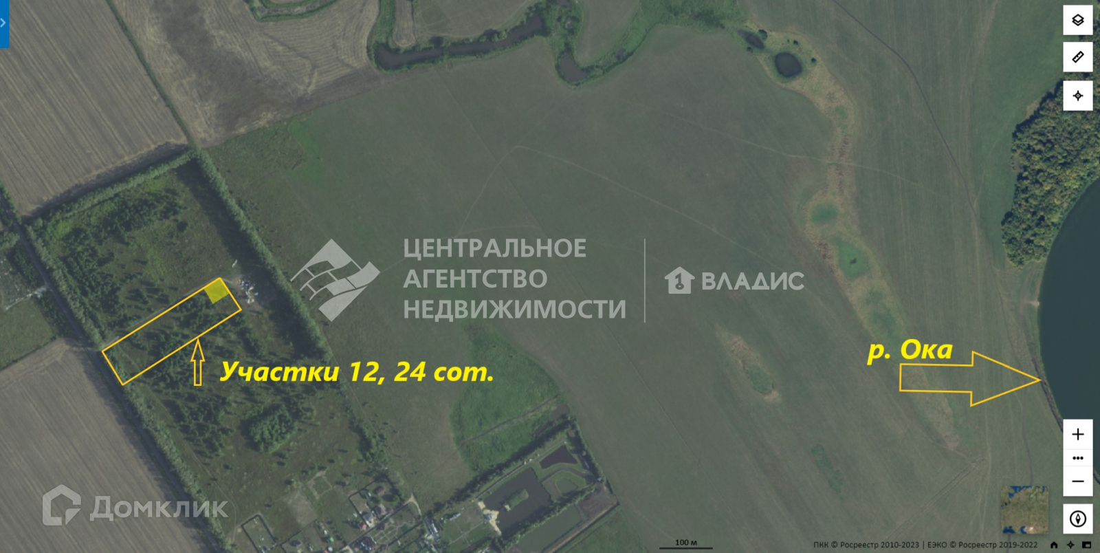Продам земельный участок с видом на  р. Ока, заливные луга, озера.