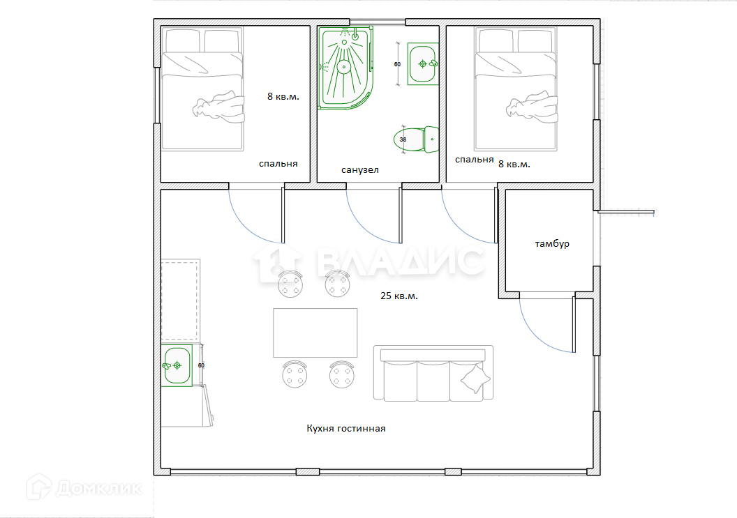 Общая площадь 49 м2