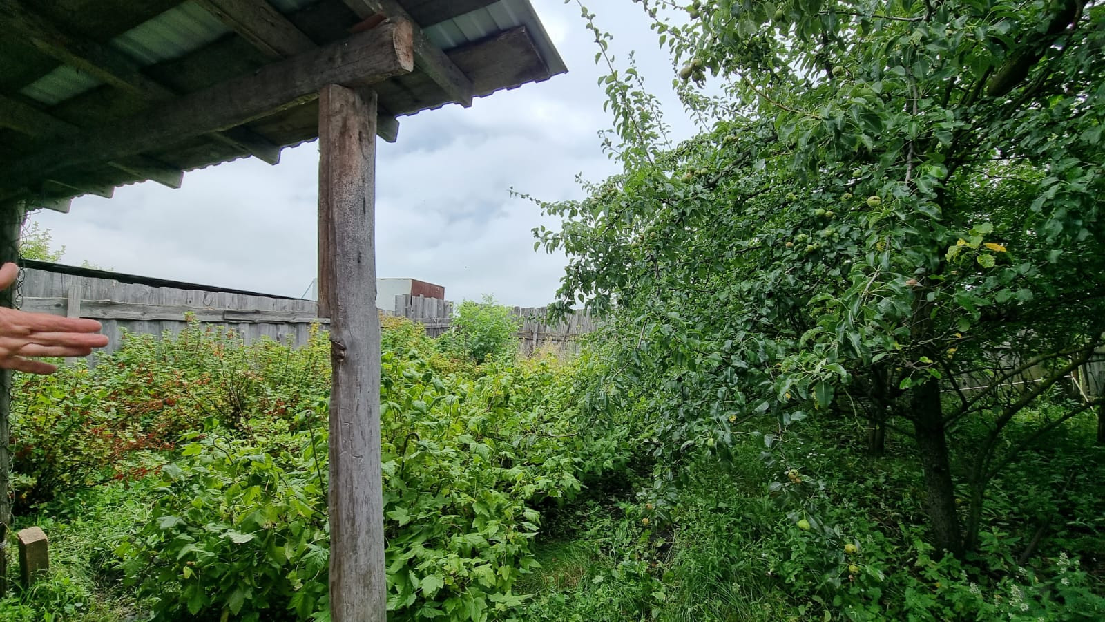 На участке сохранены деревья и ухоженный участок