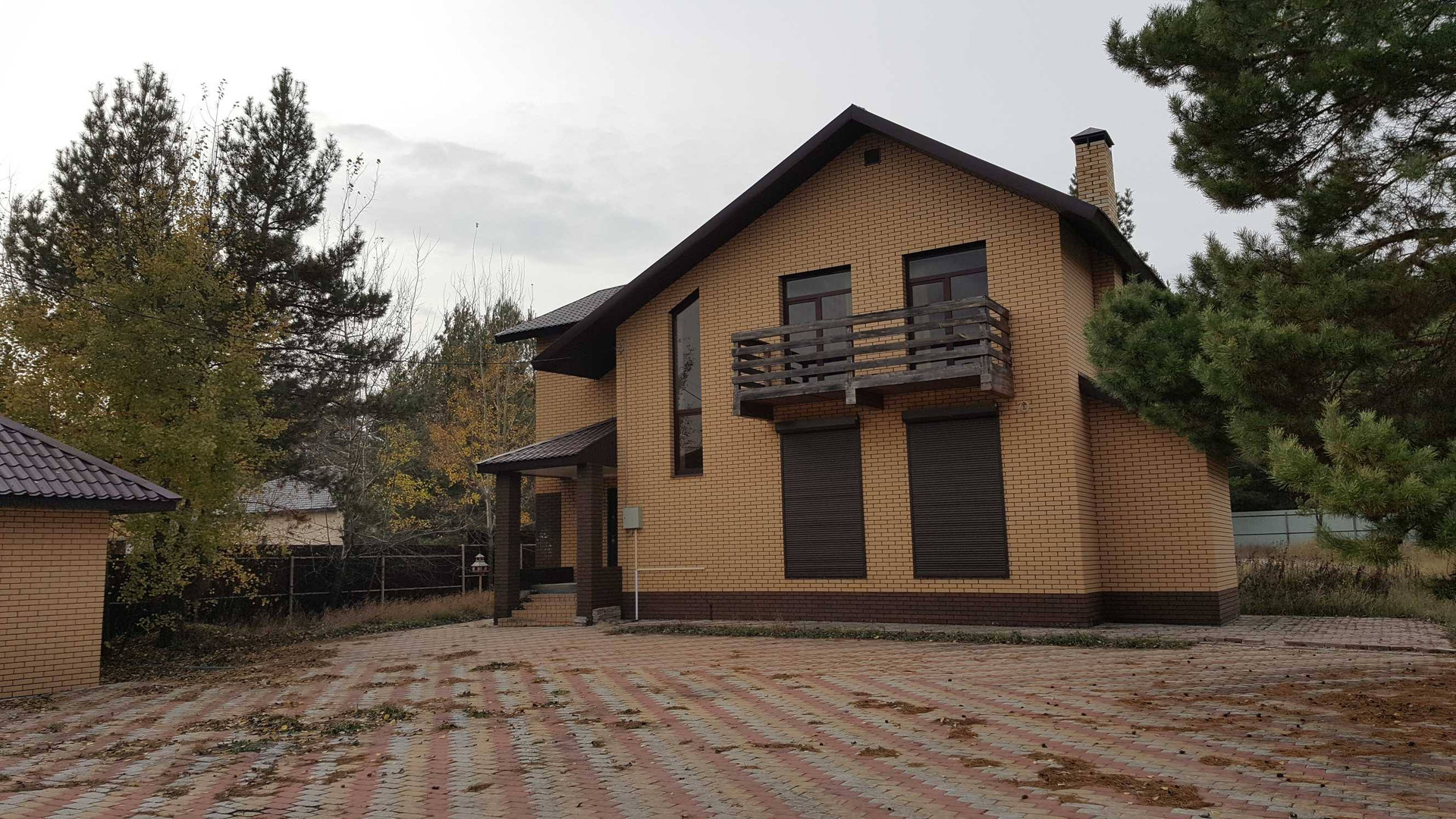 Территория двора выложена тротуарной плиткой. Забор по всему периметру.