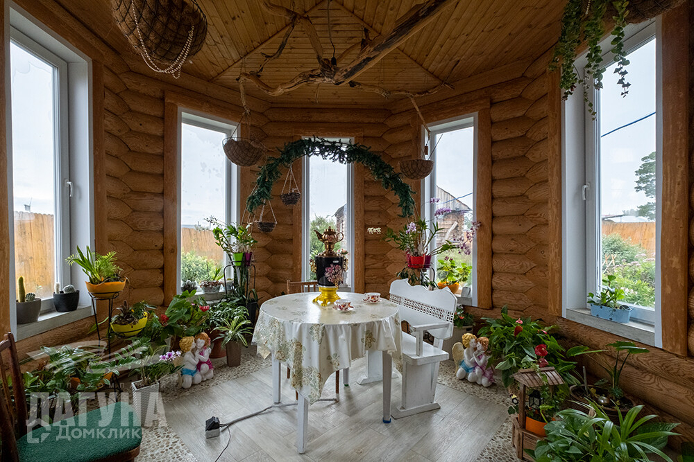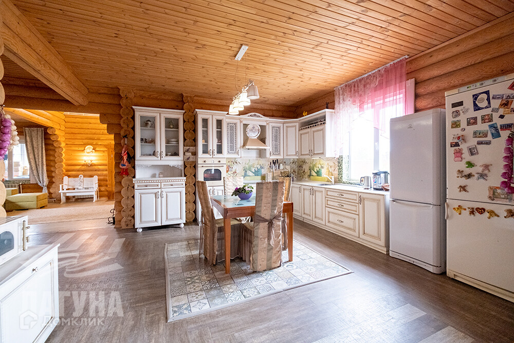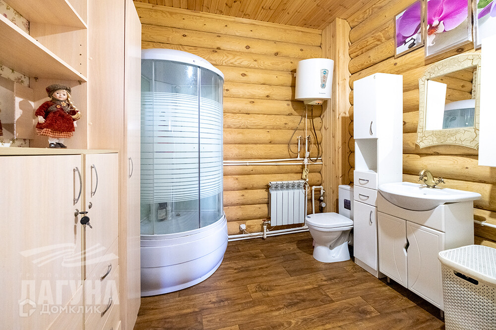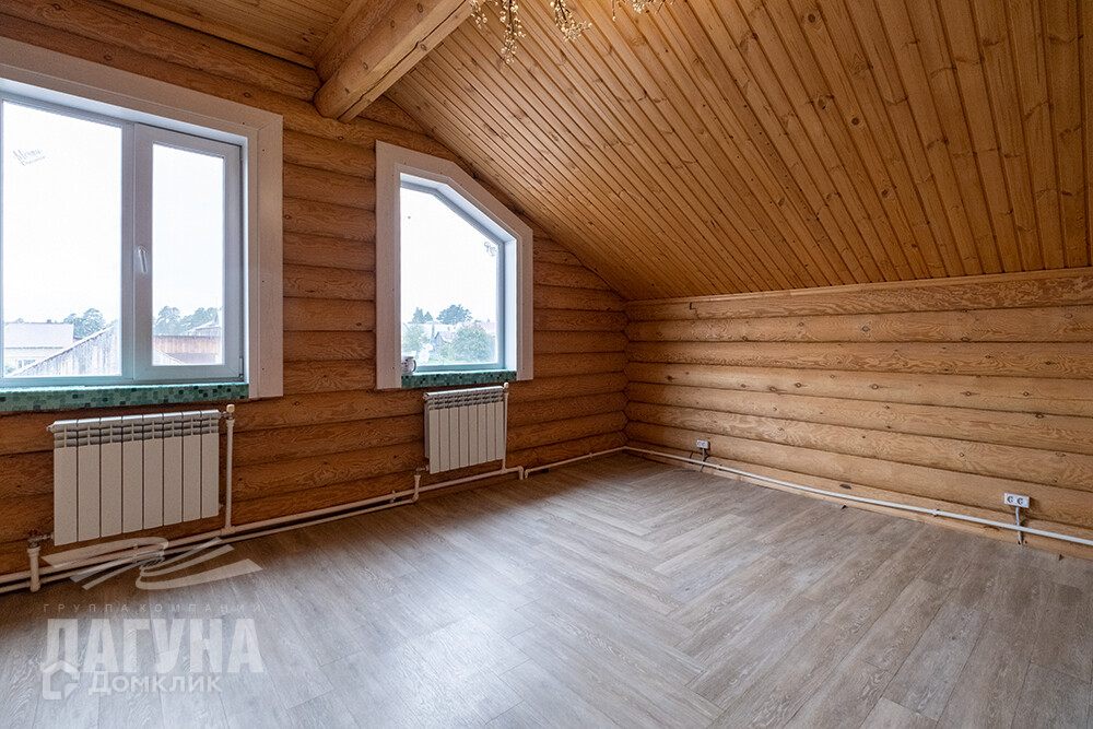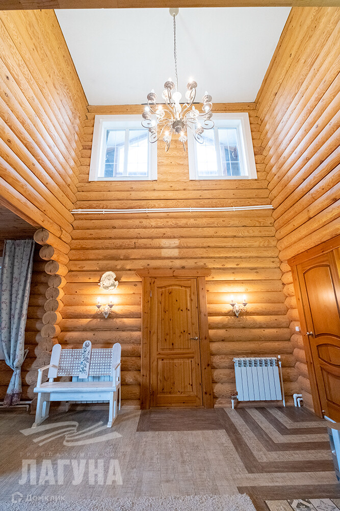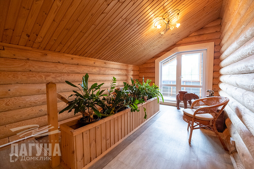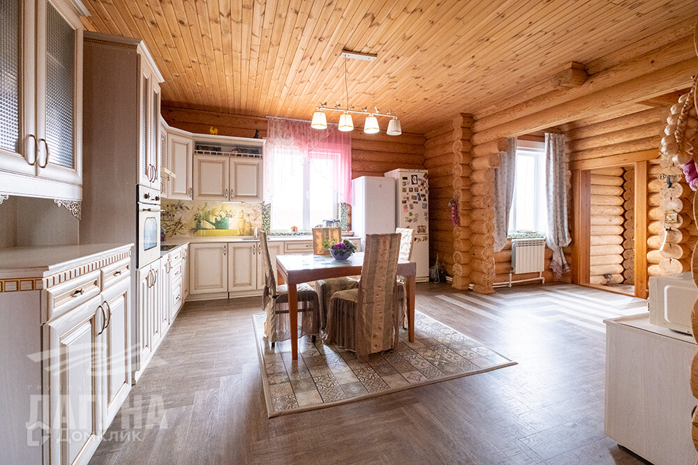 Двухэтажный дом из оцилиндрованного бревна сосны. Общ.пл. 200,4 кв.м. На первом этаже расположена гостиная с камином, кухня-столовая, санузел, гардеробная/кладовая с промышленным холодильником для хранения консервации. Котельная оборудована электрическим и газовым котлами, в котельной остается морозильный ларь. А так же есть зимний сад – как отдельный элемент уюта и красоты. На втором этаже – три спальни. В доме два входа. На участке – 13,85 сот. расположена баня (6*6) из оцилиндрованного бревна кедра, с парной, моечной и комнатой отдыха. Гараж из бетонных блоков - 52 кв.м., высота ворот – 4,5 м. Есть теплица, хоз.постройки.