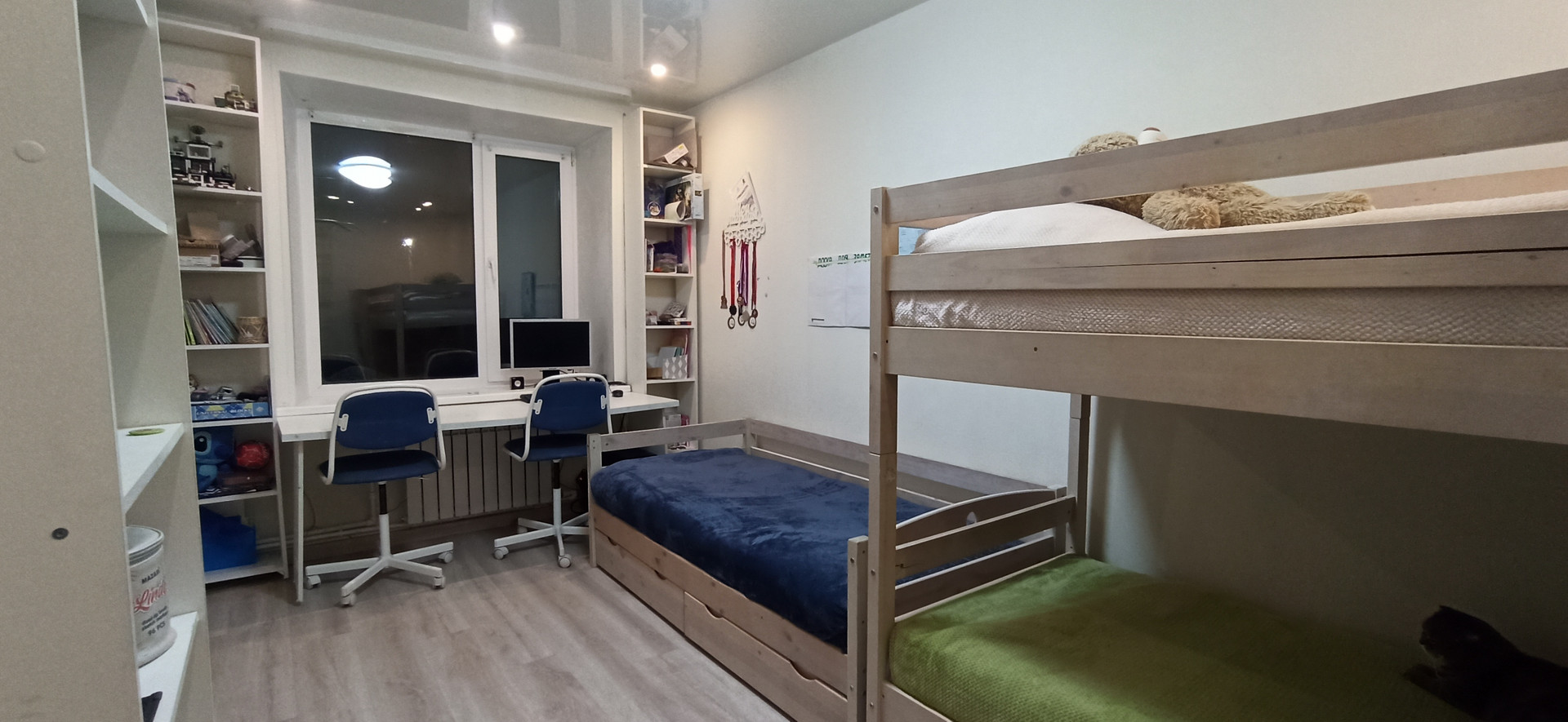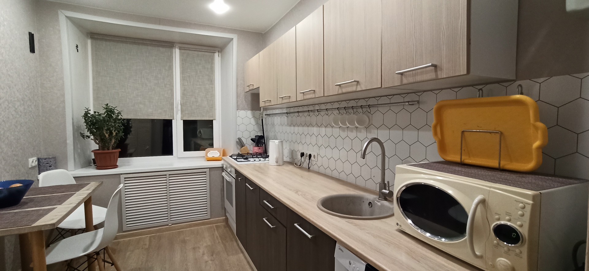 В двух комнатах и кухне хороший ремонт (заменены полы, натяжные потолки,качественные обои, двери). Ванная требует ремонта, до неё руки у нас ещё не дошли.