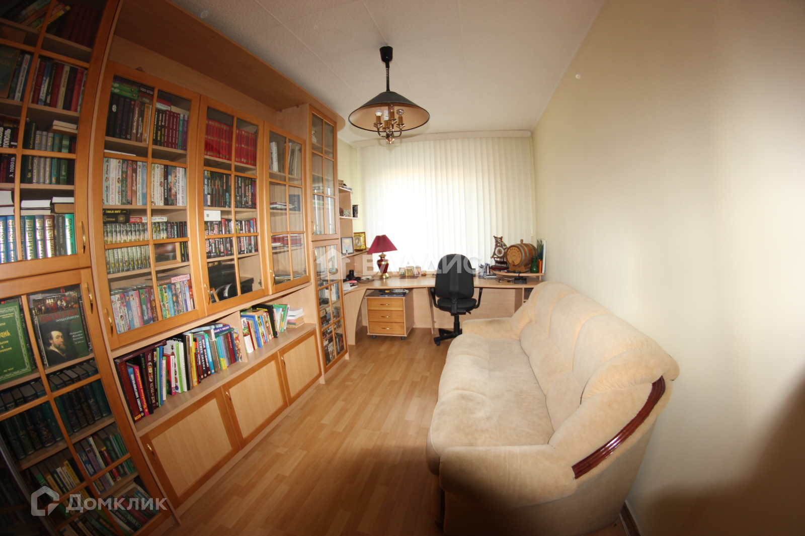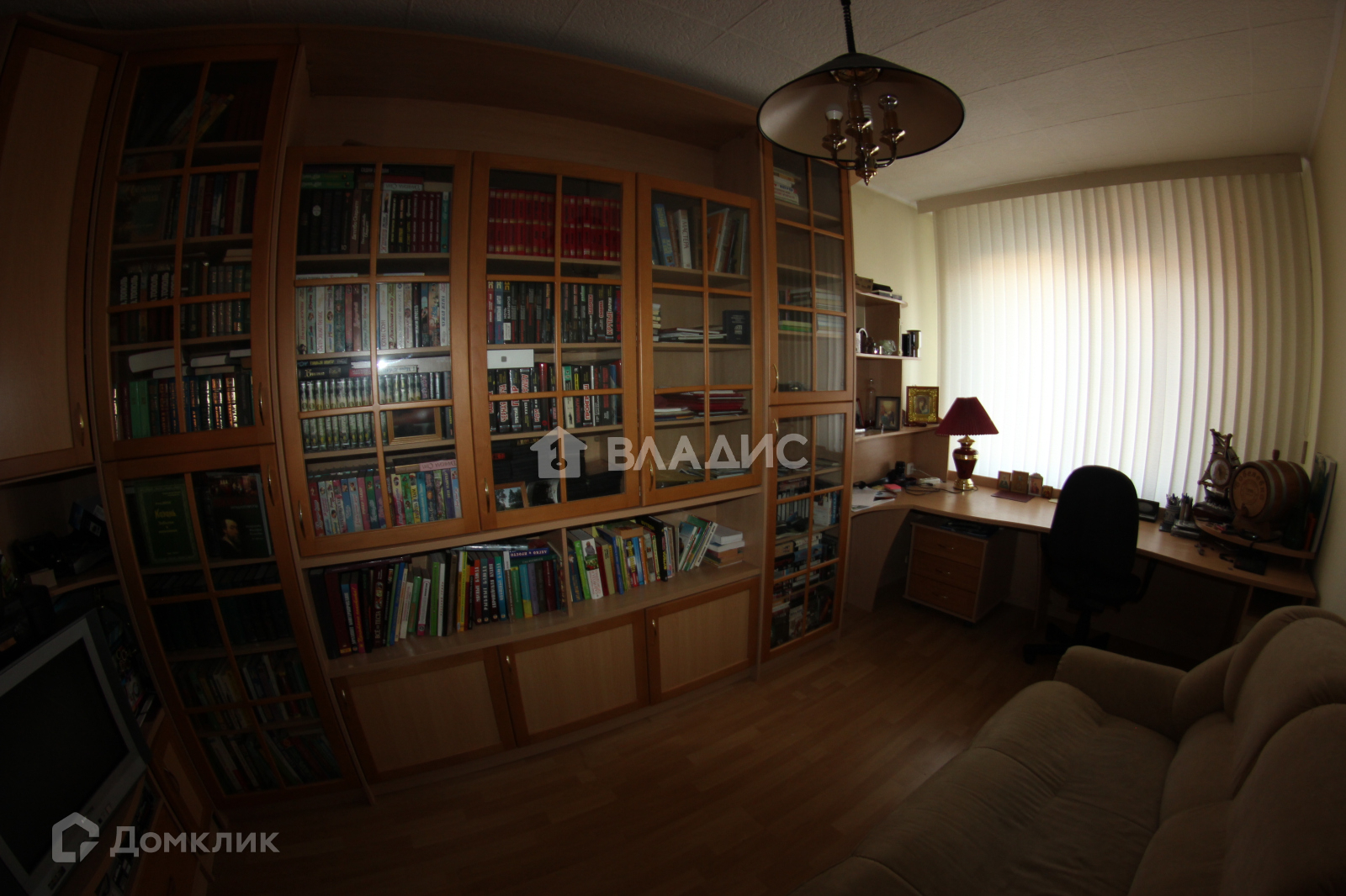 - Кабинет с библиотекой. Письменный стол, книжные шкафы под стеклом.