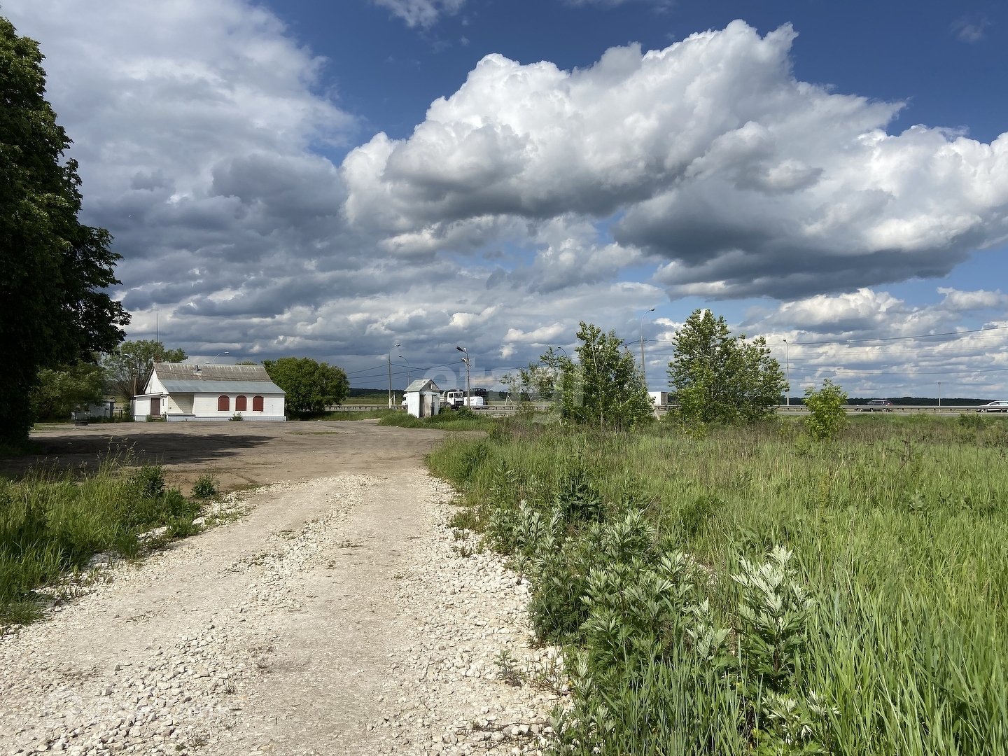 ГАЗ по улице, электрический столб по границе участка.