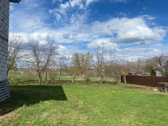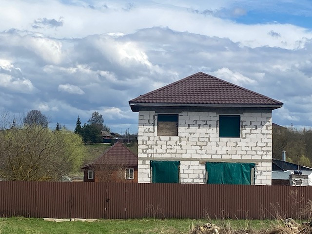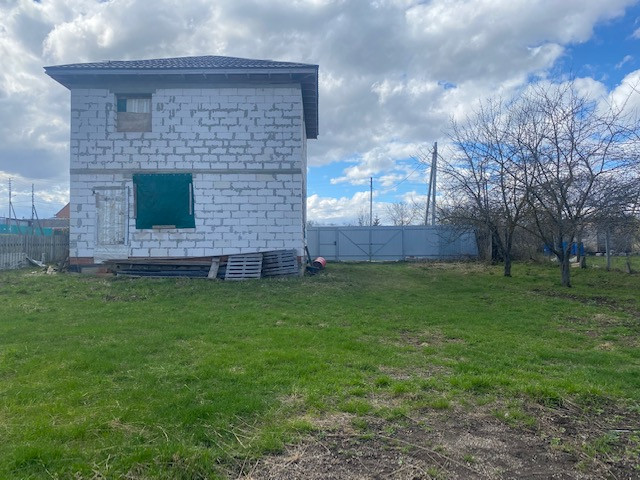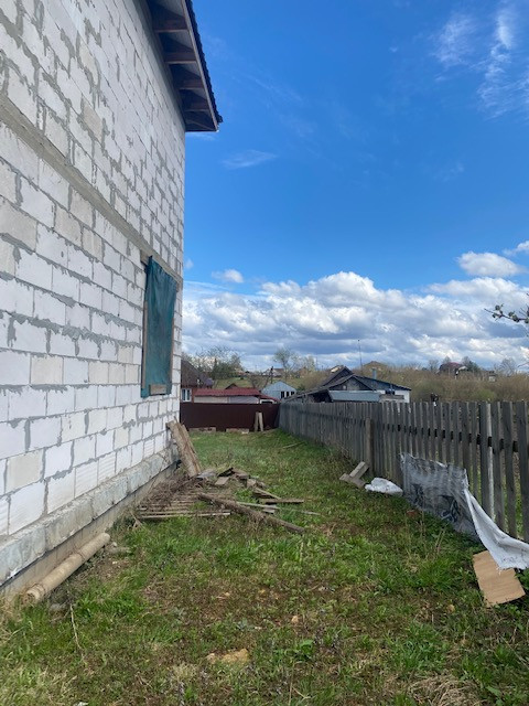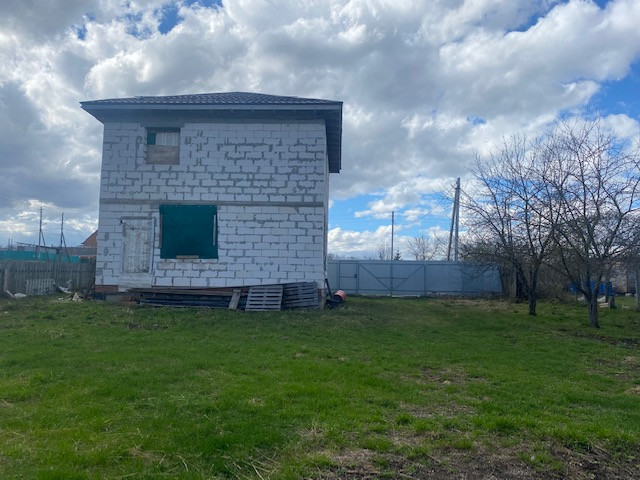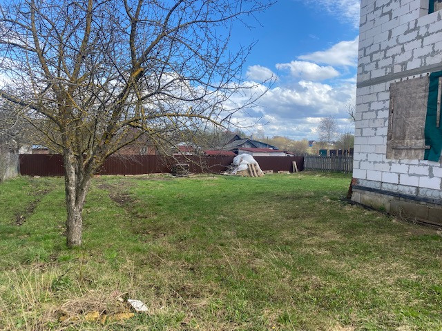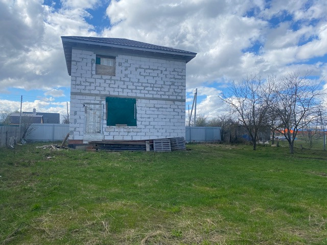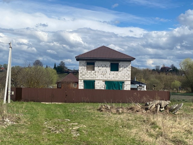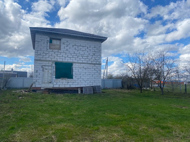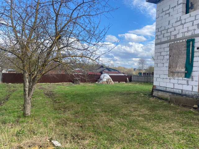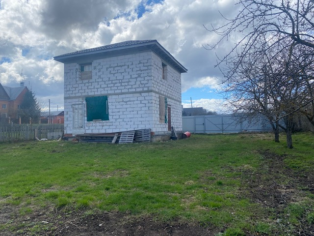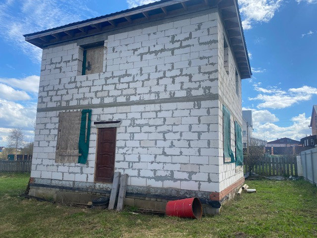 На участке начато строительство дома, коробка из блоков готова, площадью 120 кв.м., состоит из двух этажей и полноценный (2м) цокольный этаж, фундамент ленточный, блок подведён под крышу.