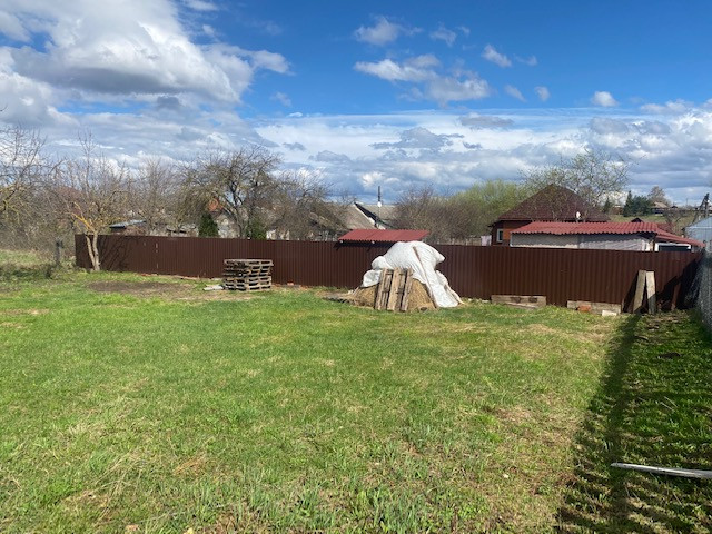 Участок огорожен с двух сторон профлистом, сделаны ворота, калитка и с двух сторон огорожен сеткой рабицей. У земельного участка есть возможность прирезать ещё 2-3 сотки земли. От центральной дороги 5 минут пешком, дорога асфальтирована.