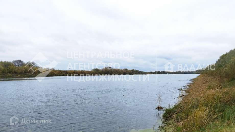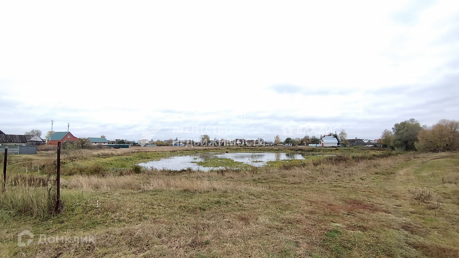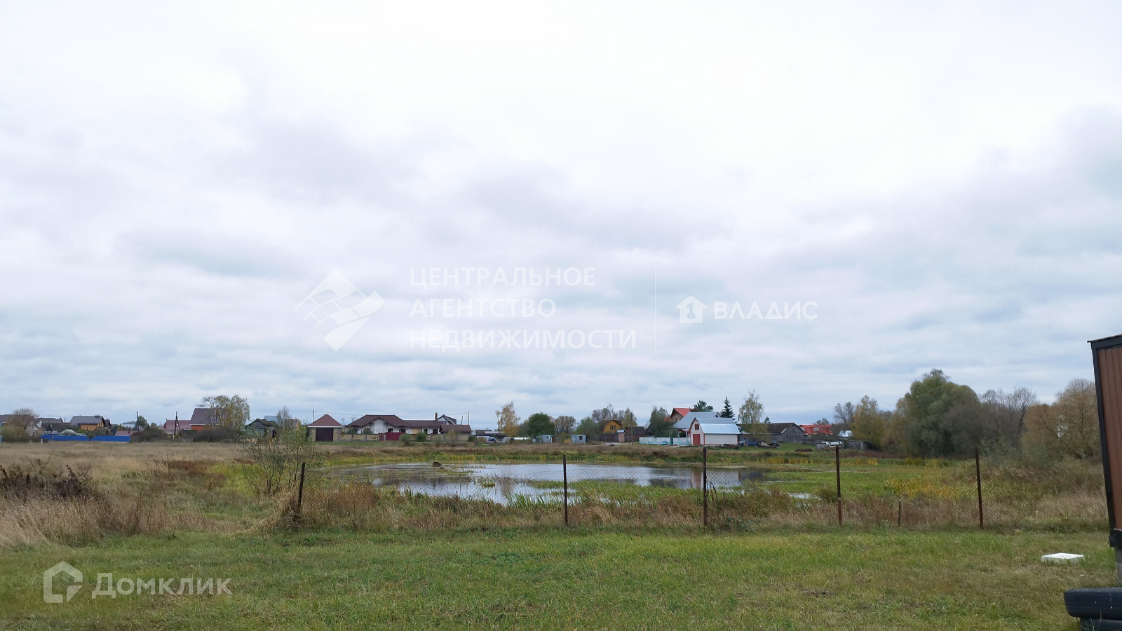 Сзади участка расположен пруд.
