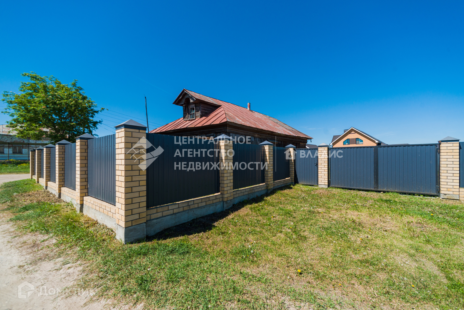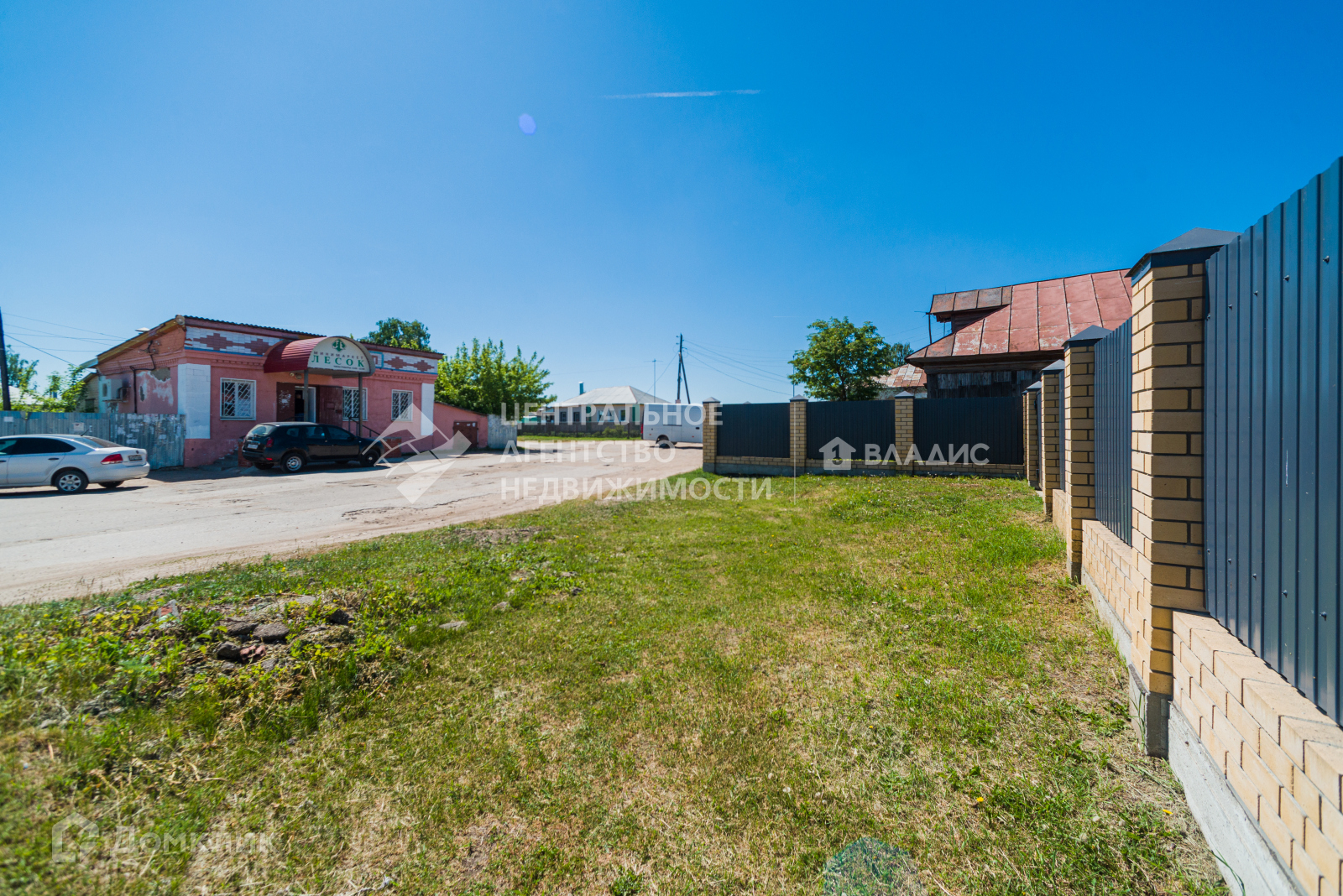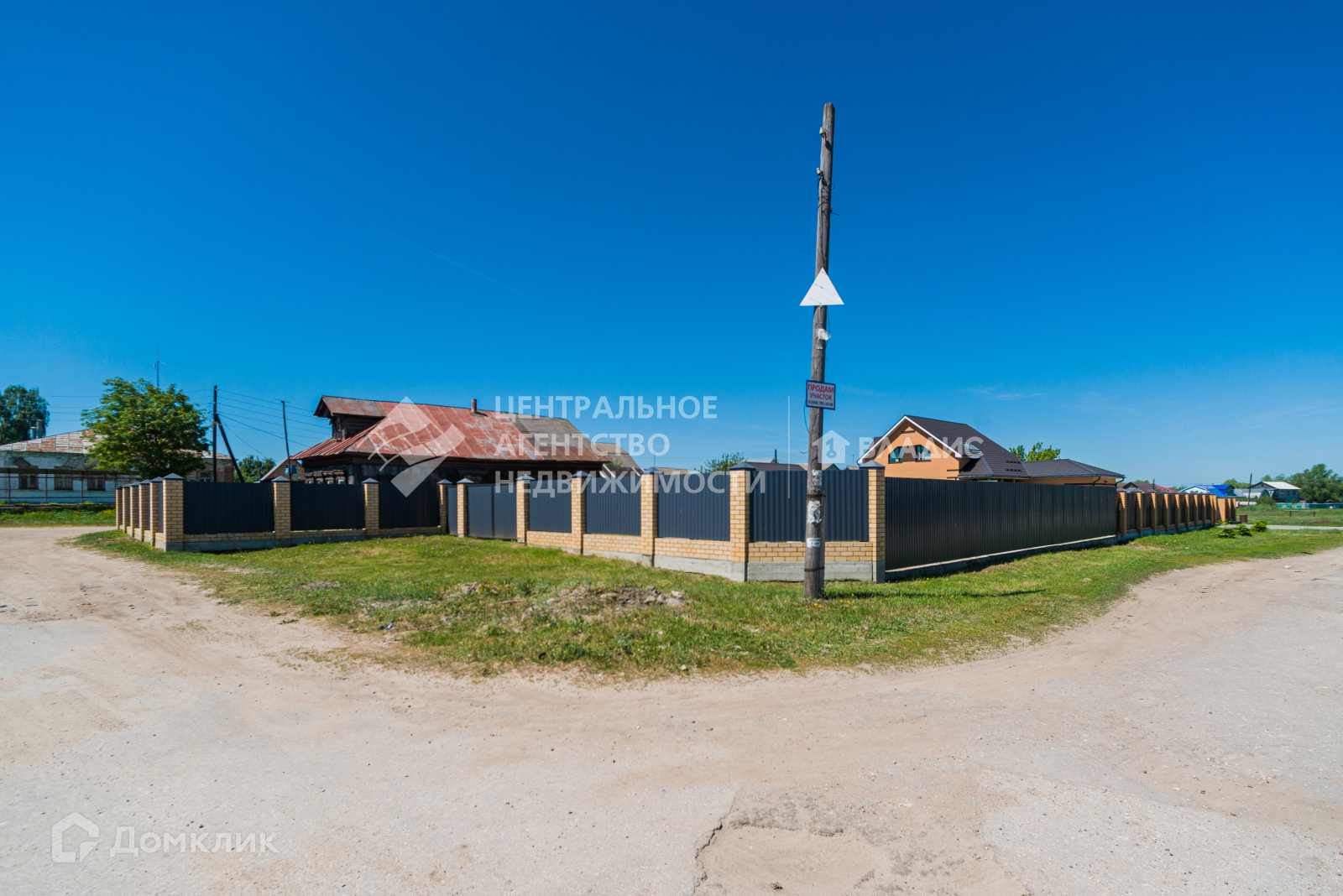 Огорожен забором из профлиста, на ленточном фундаменте, столбы обложены кирпичом.