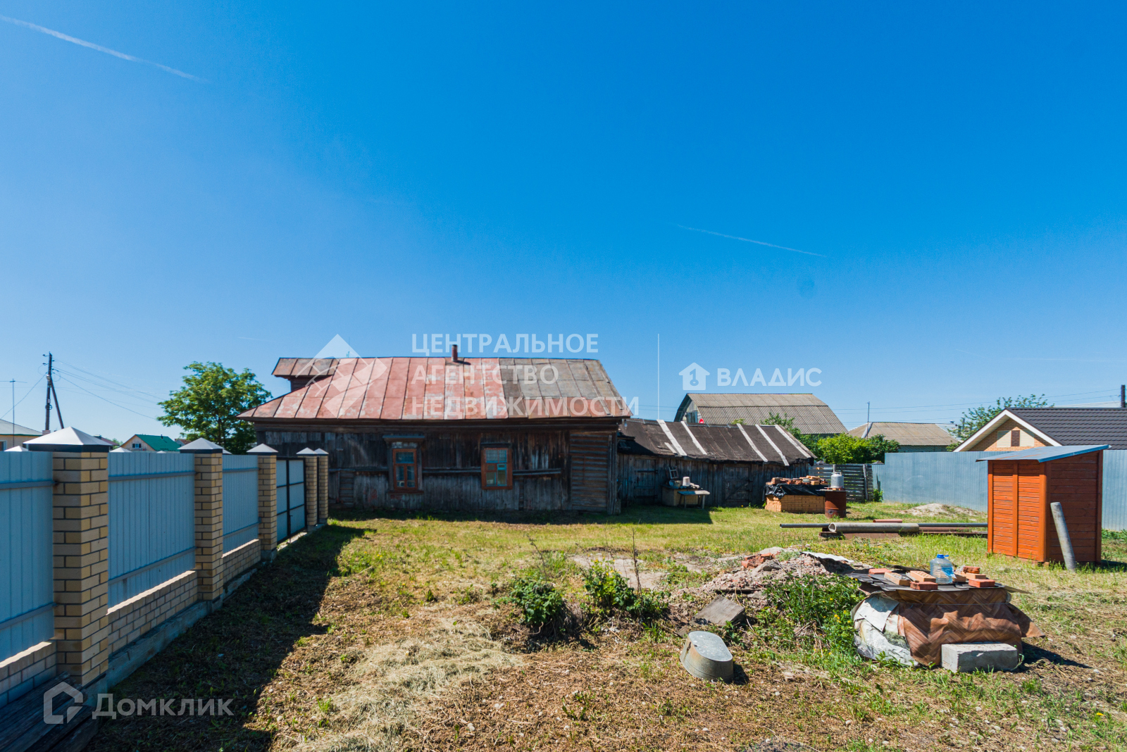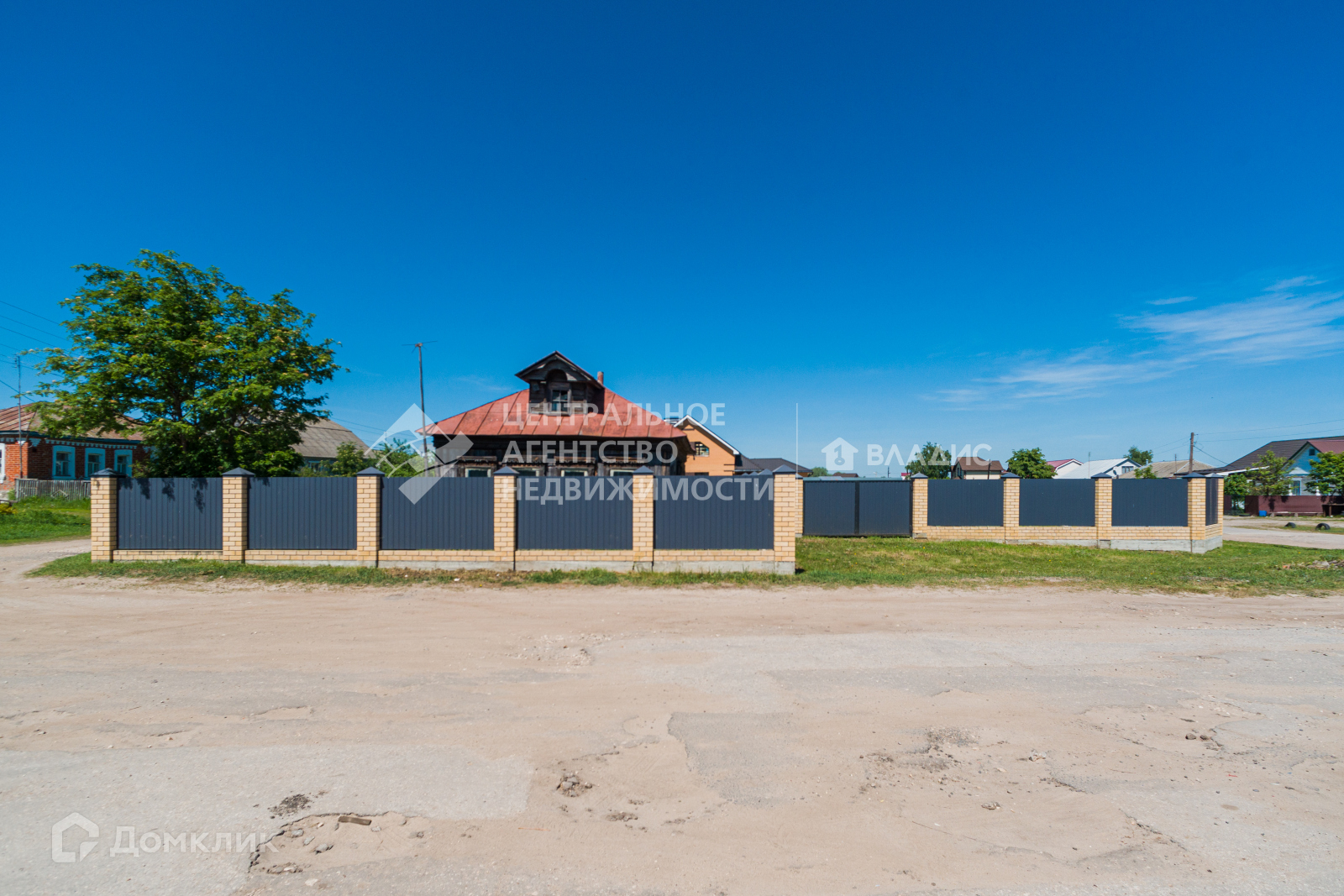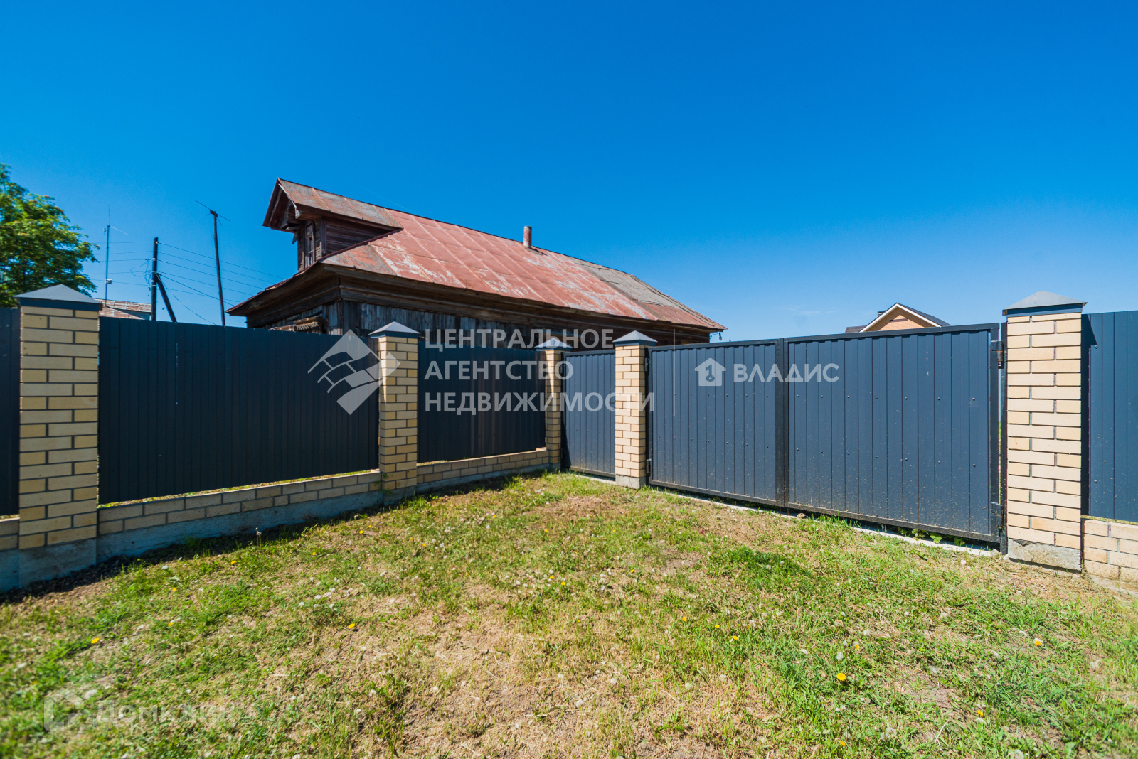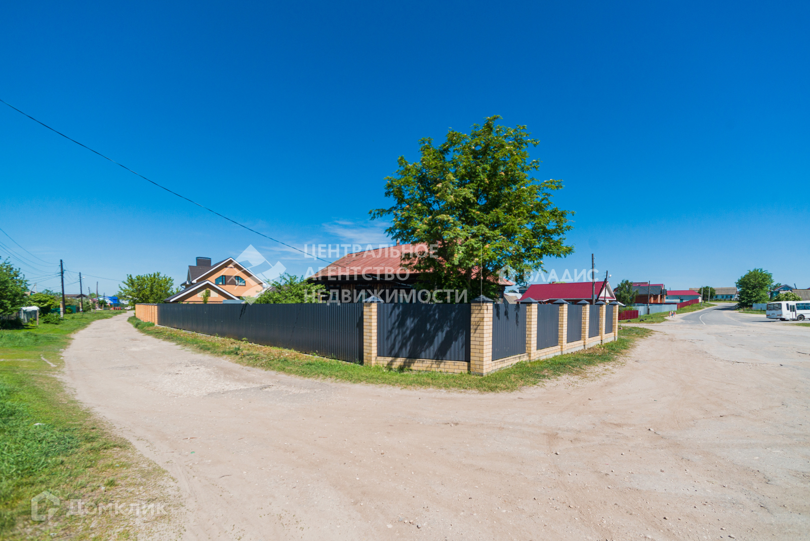Огорожен забором из профлиста, на ленточном фундаменте, столбы обложены кирпичом.