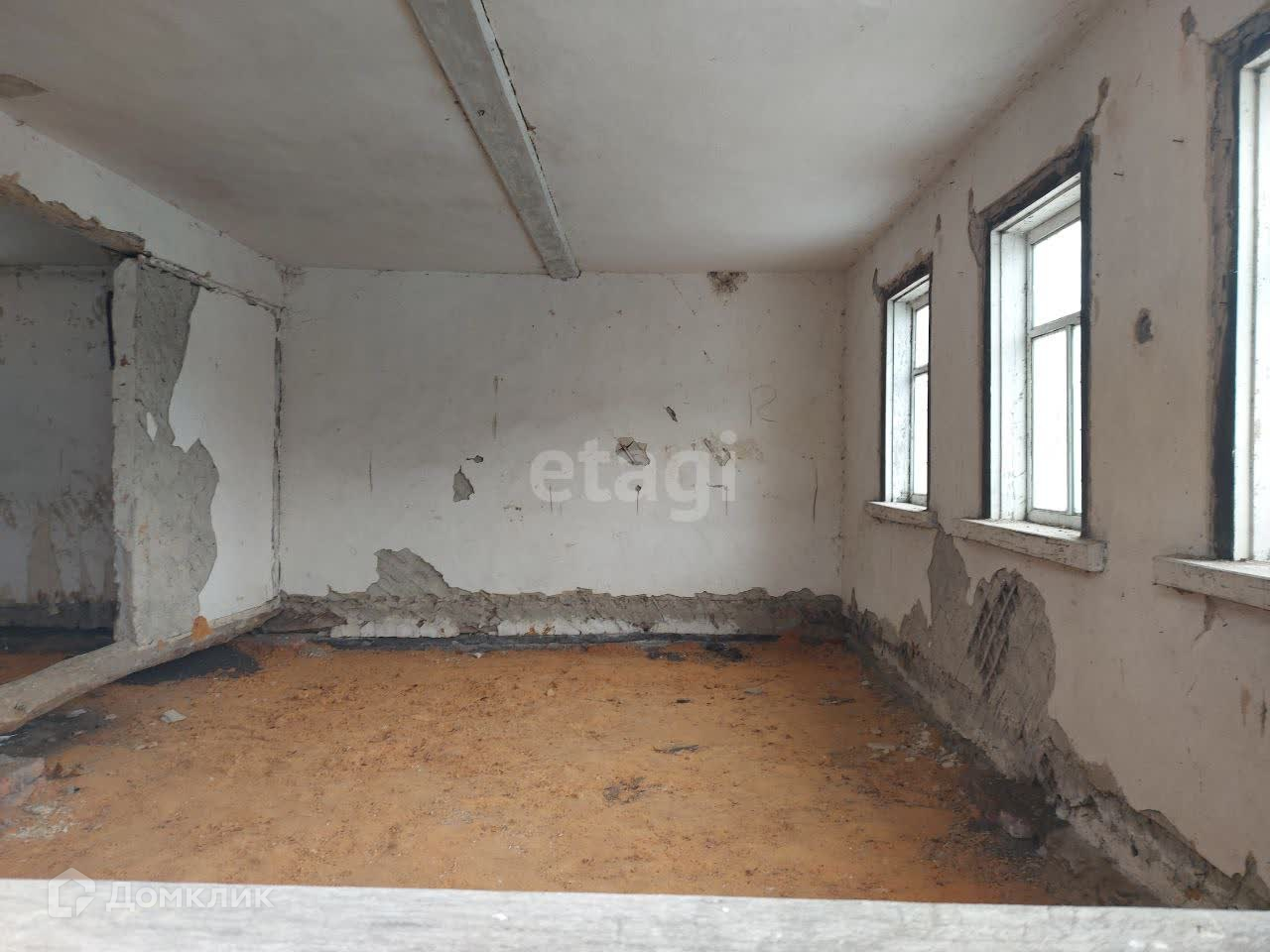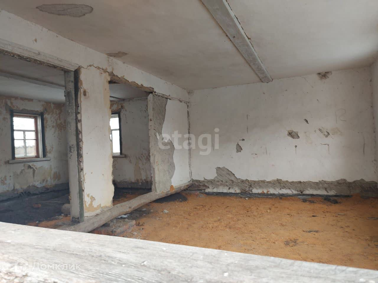 Дом деревянный, обложен кирпичом, высокий фундамент, большие оконные проемы, высокие потолки, но требует полного ремонта.