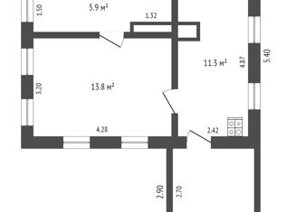 Общая площадь: 42.7 м2