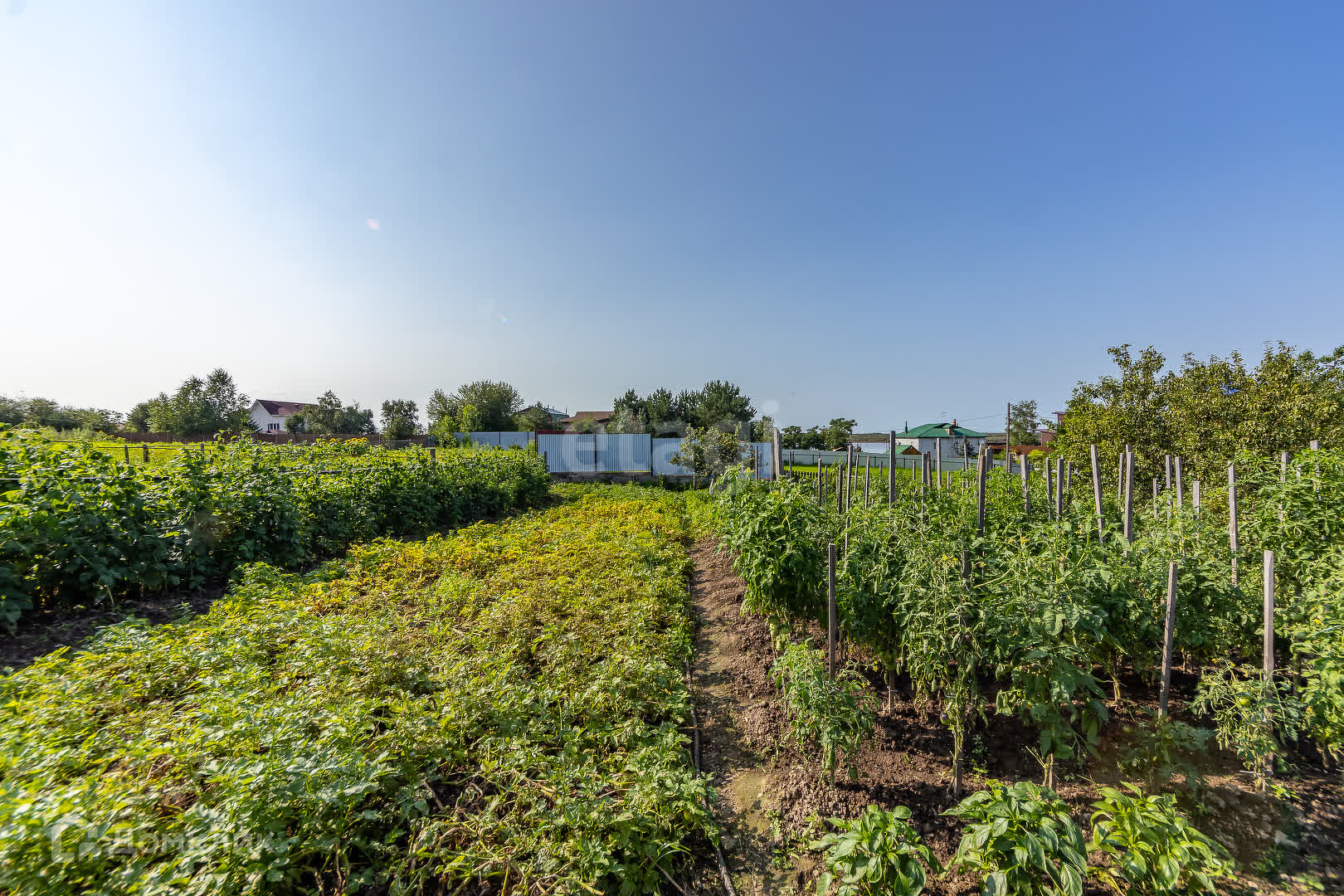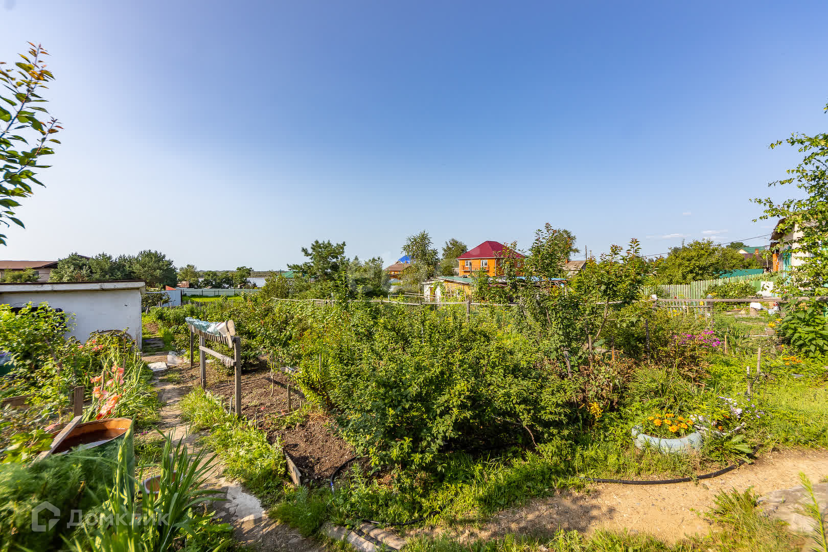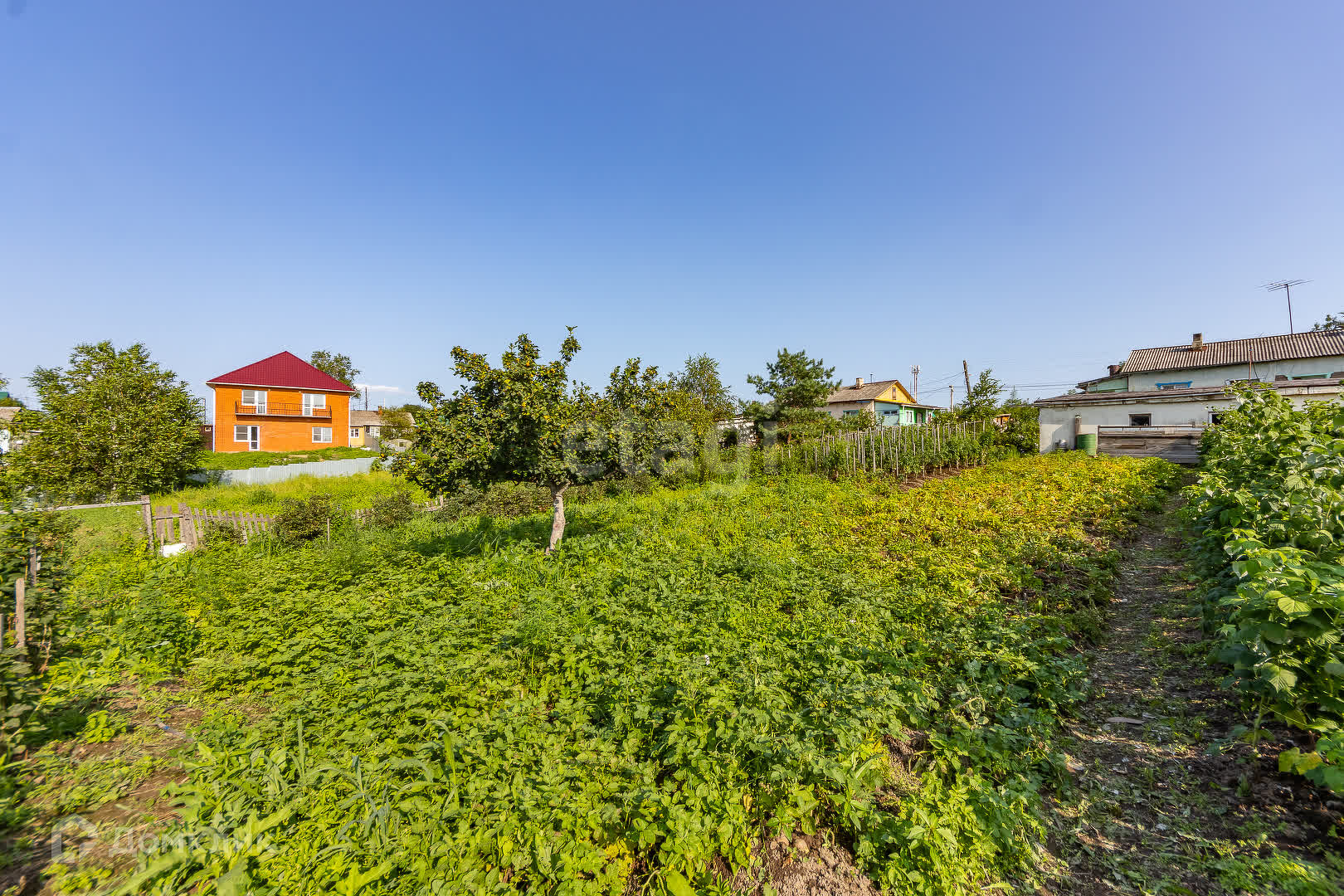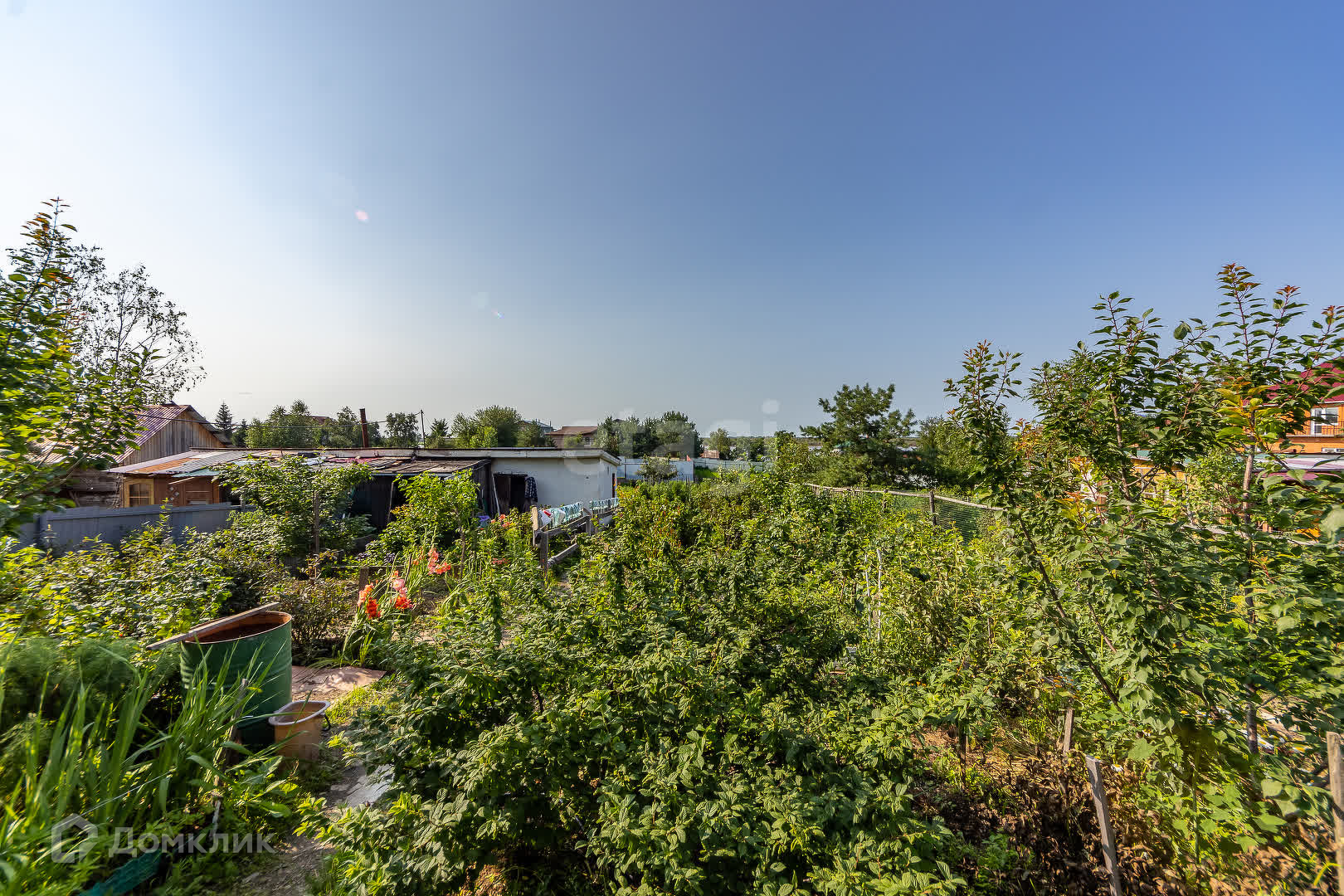 Культуры, которые произрастают на участке в штуках: абрикосы 5, яблони 2, груши 2, сливы 2, вишня 6, черешня 1, жимолость 50, смородина 22, рябина 3, боярышник 4, крыжовник 4, годжи 1, шелковица 3, персик 1, виноград 1, калина 1, миндаль 1, сирень 1, бузина 3, береза 2, клен 2, малина 50 кв. м, клубника 100 кв. м.