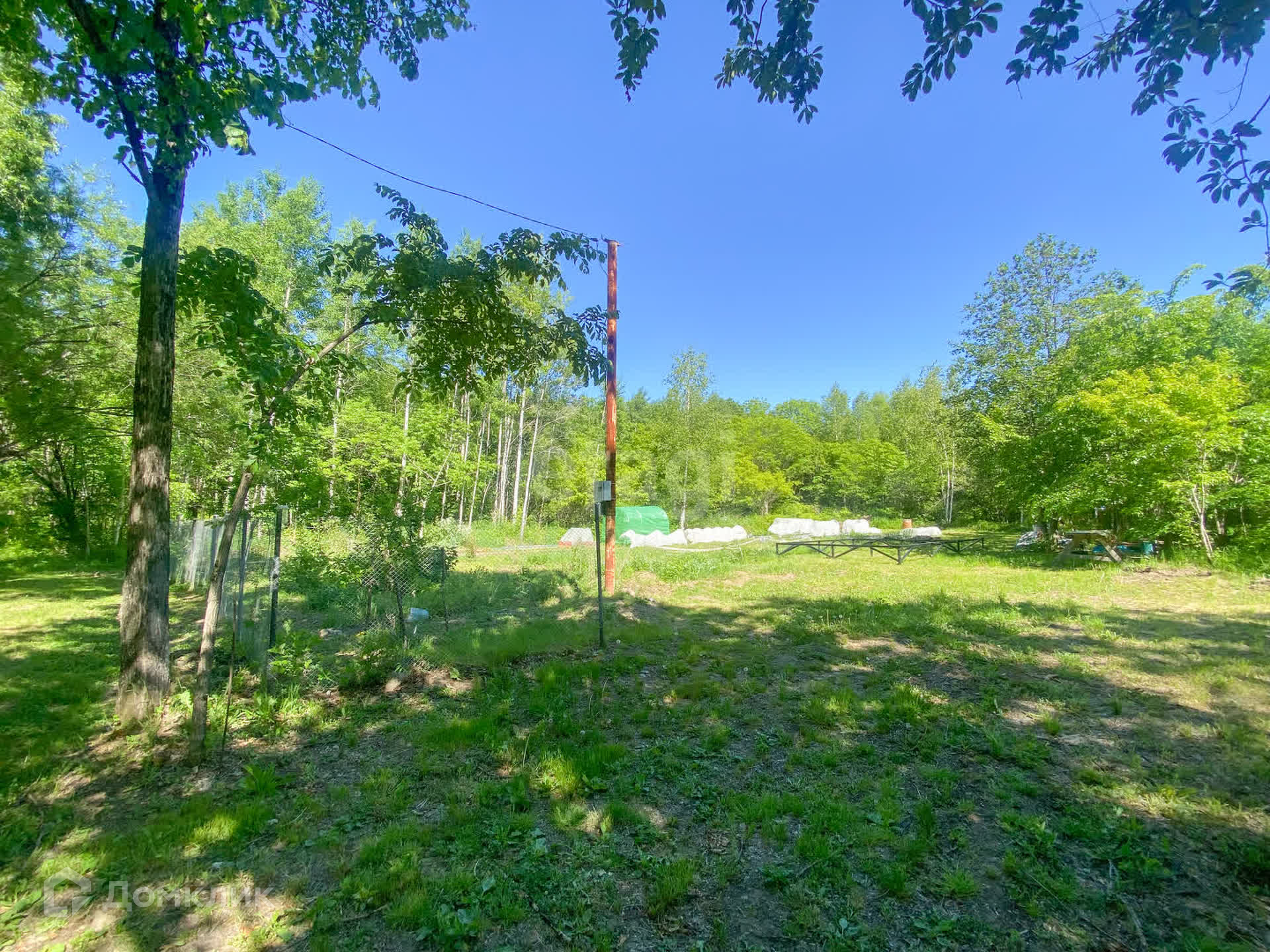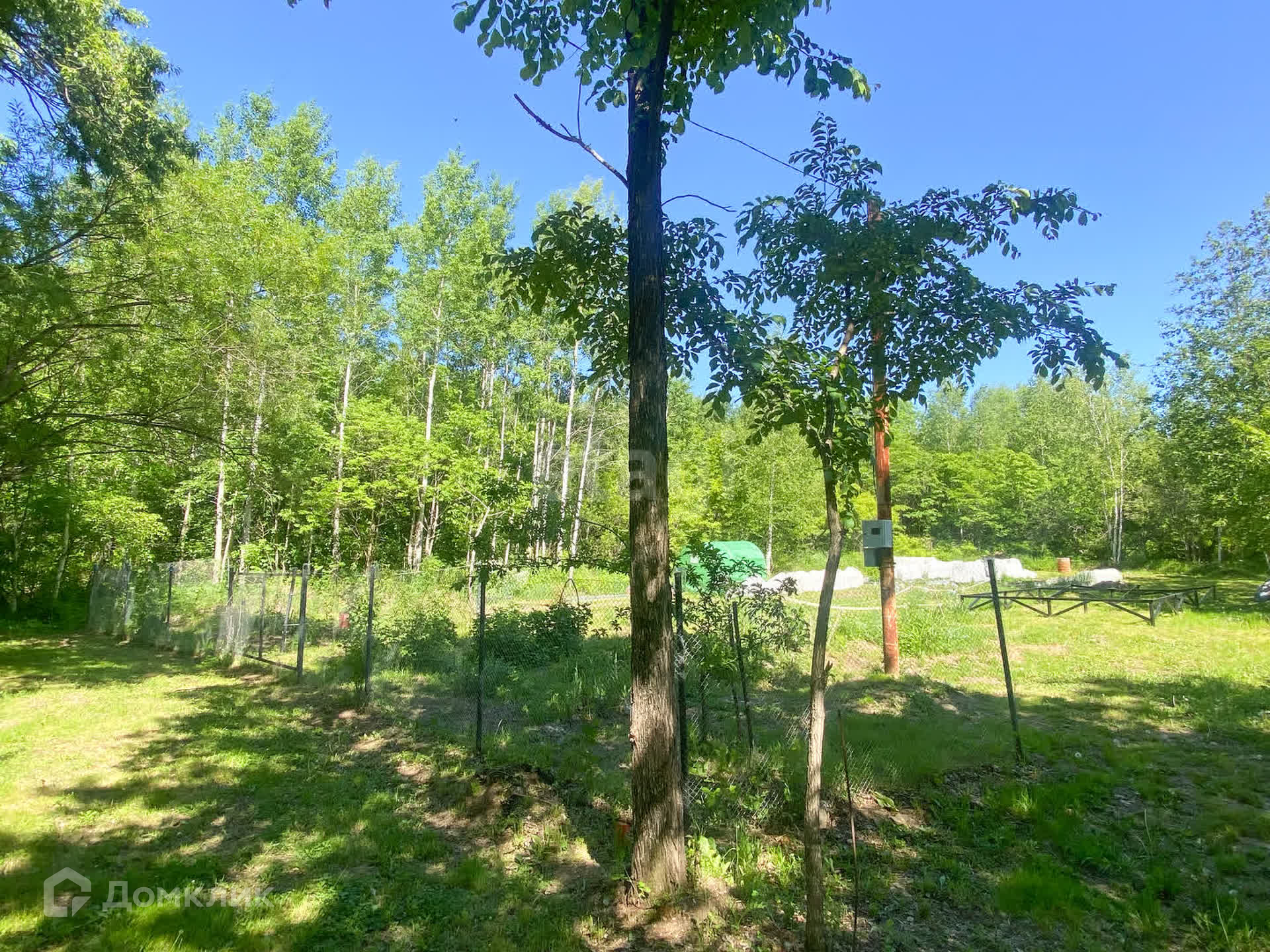 На въезде имеется шлагбаум, возле участка находится электрический столб.