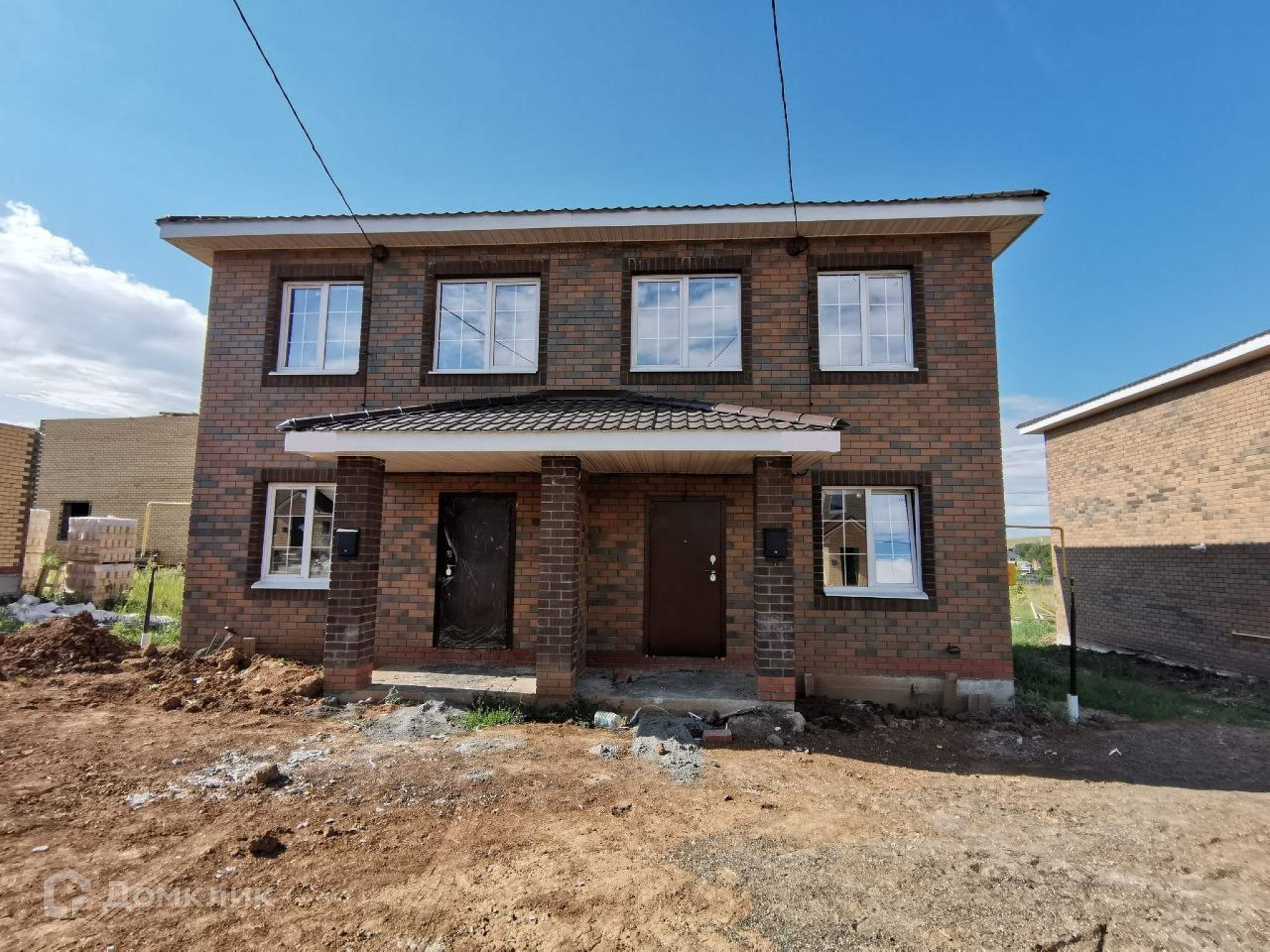 Каждая часть дома включает в себя 90 м2. жилой площади и участок площадью 2,8 сотки.