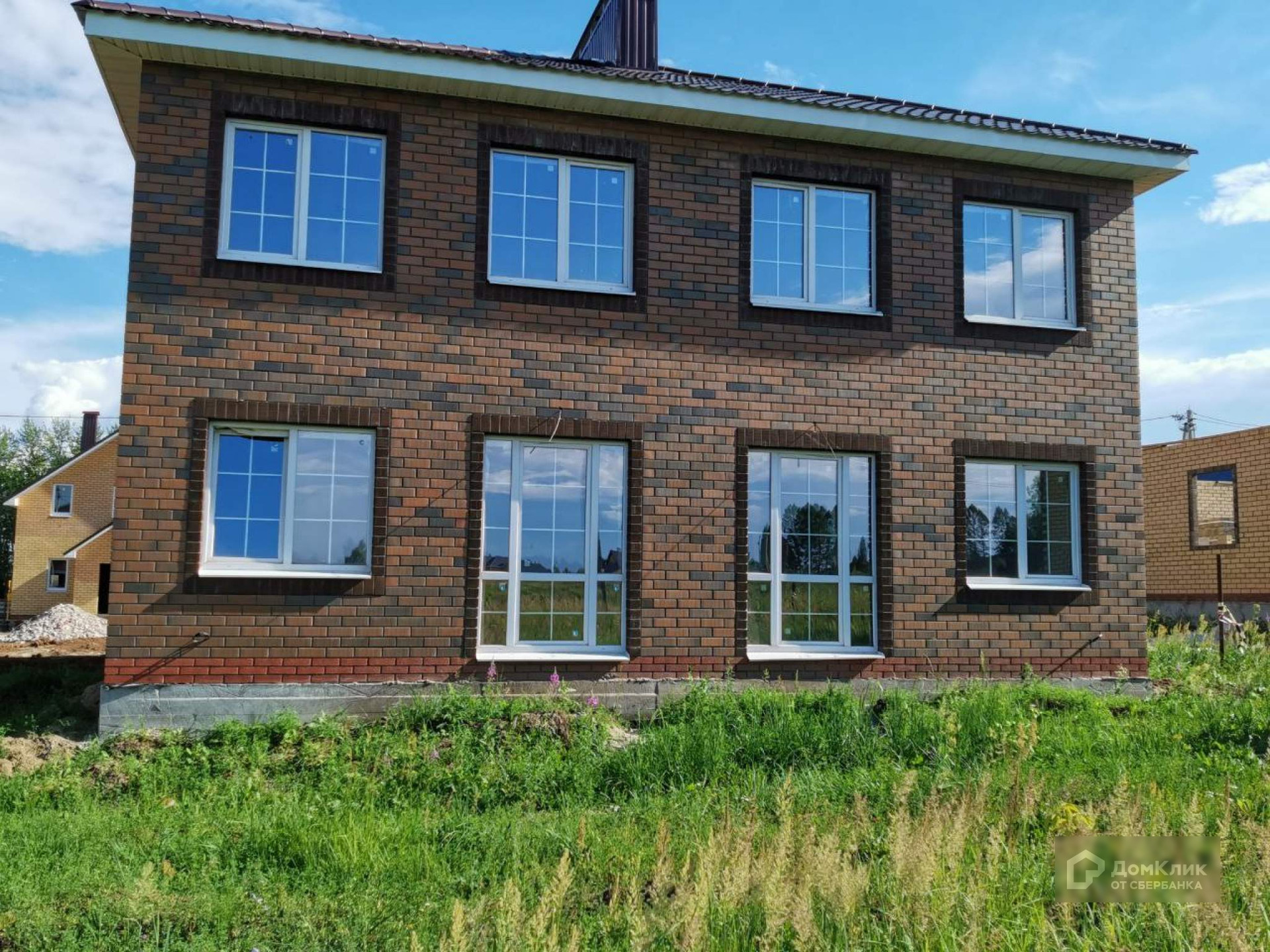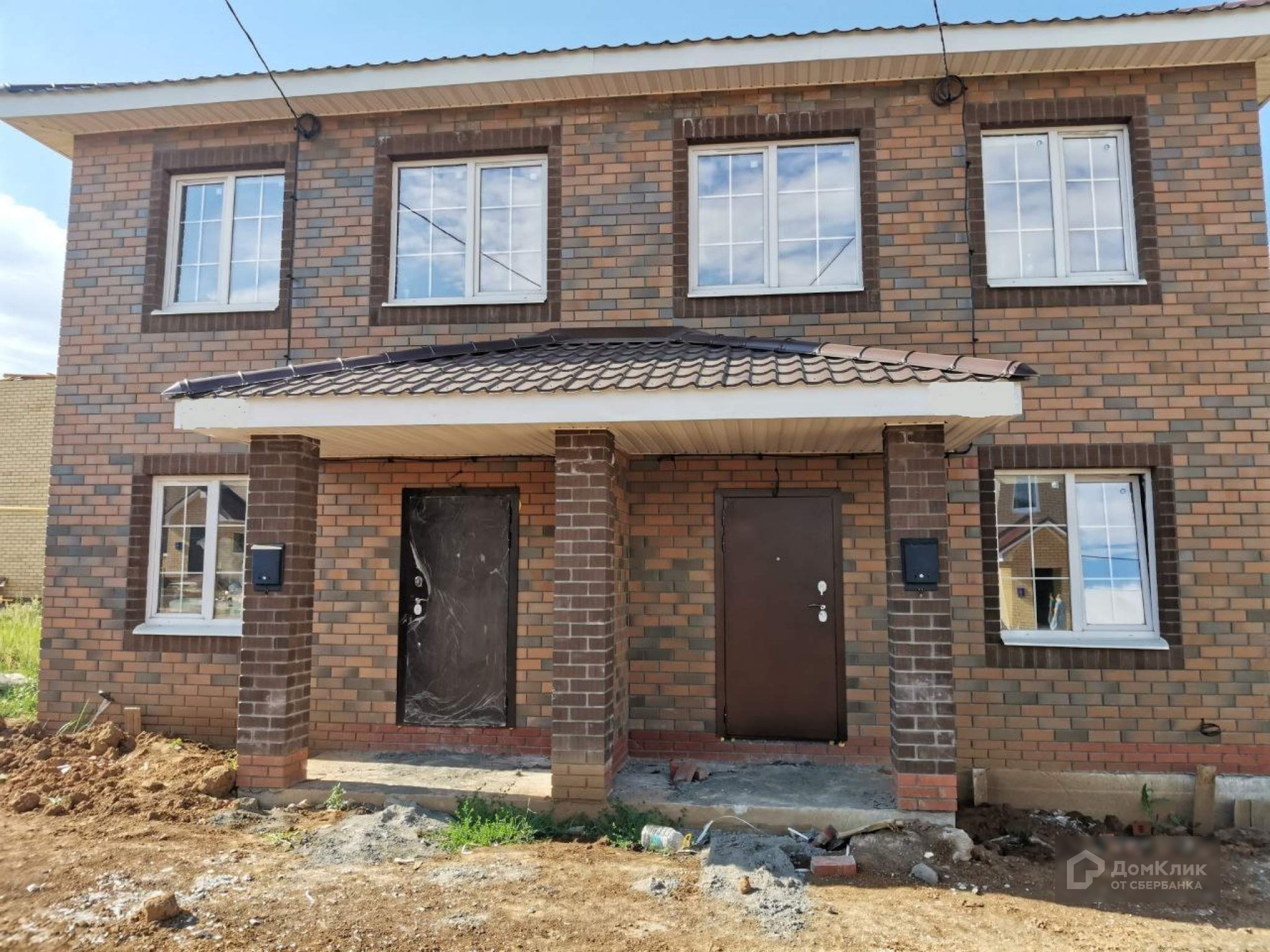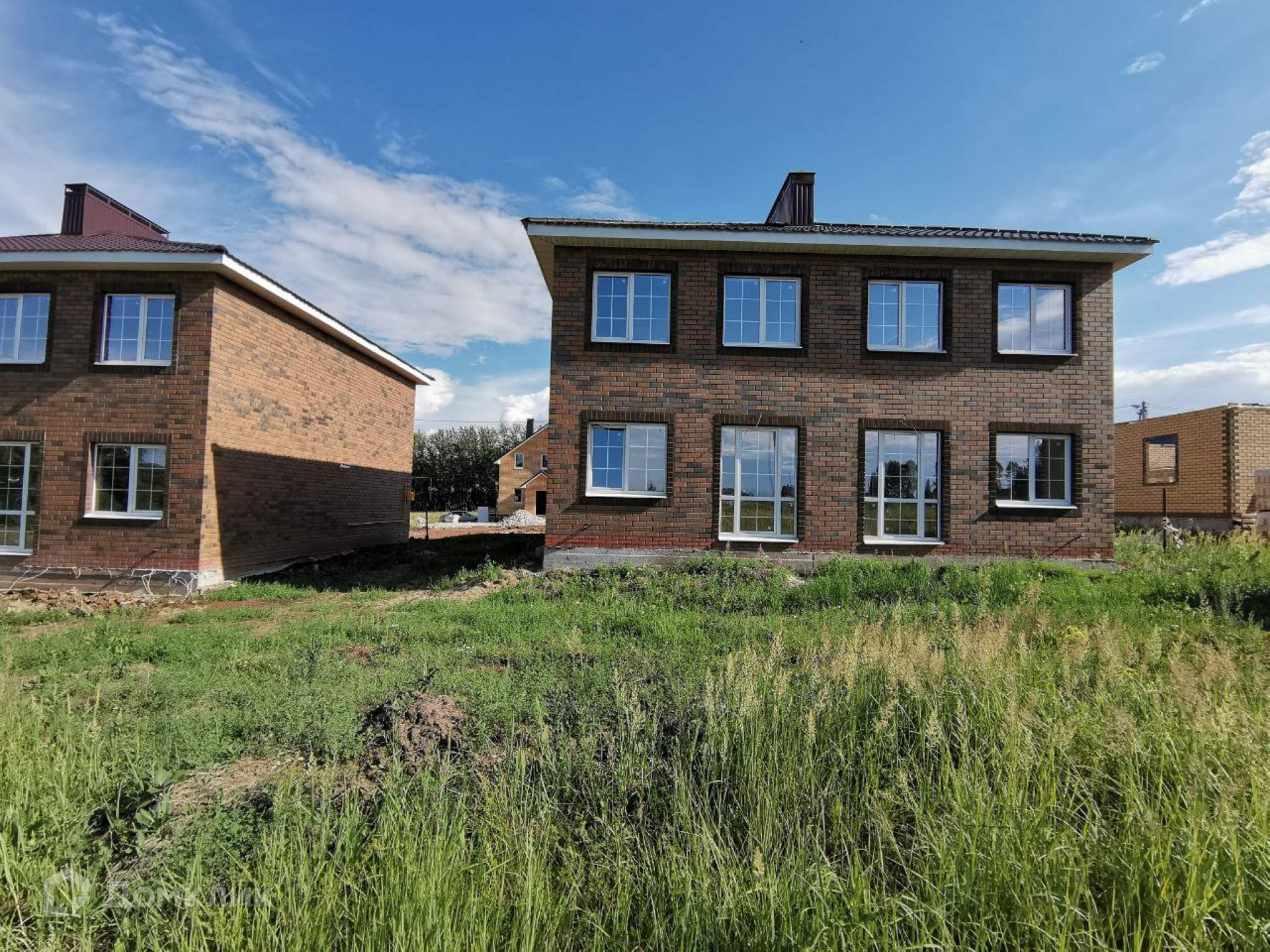 2-х секционный блокированный коттедж с двумя полноценными этажами и земельными участками определенными под каждую часть дома отдельно.