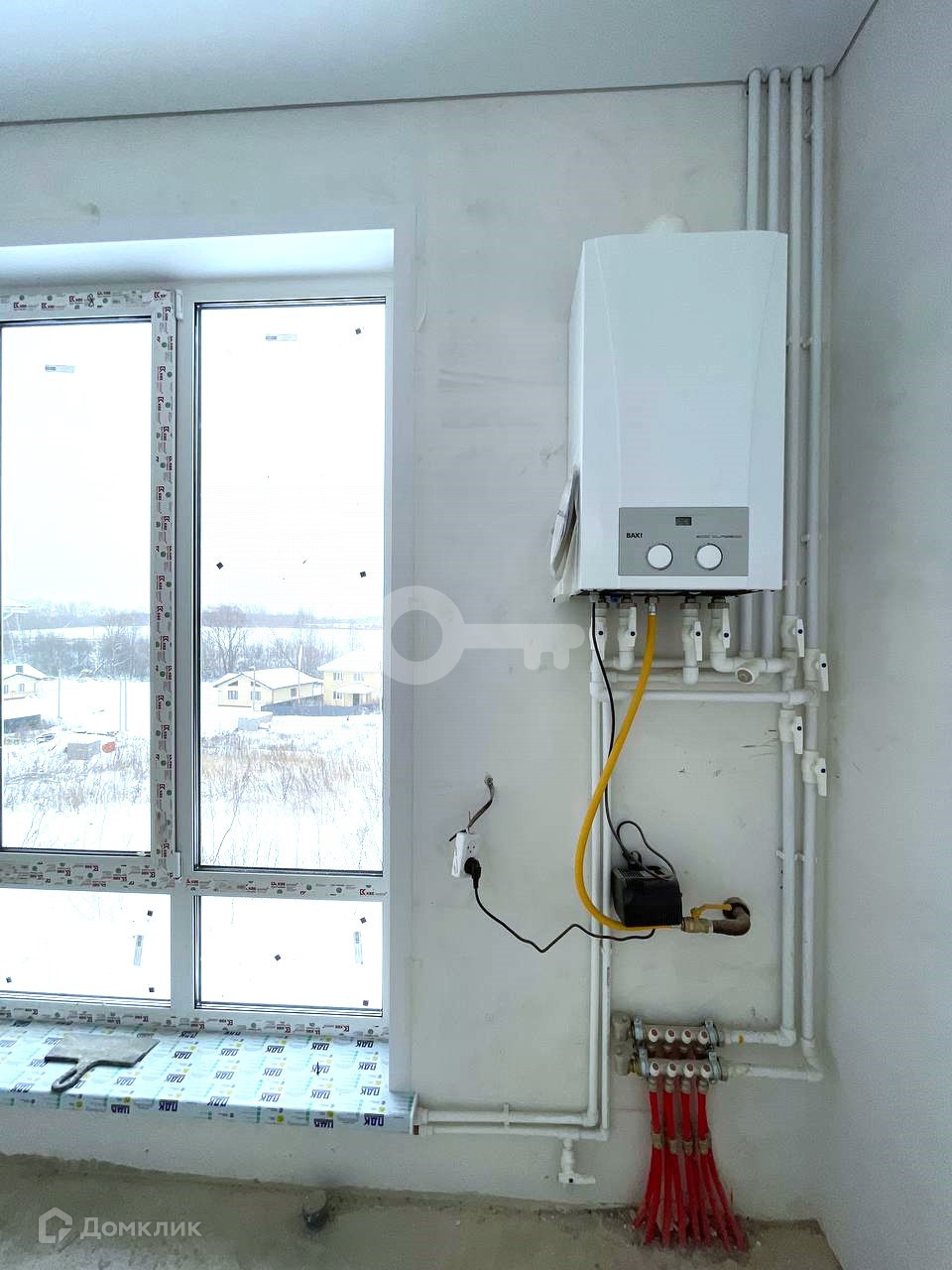установлена система теплых полов, выровнены стены и полы.
