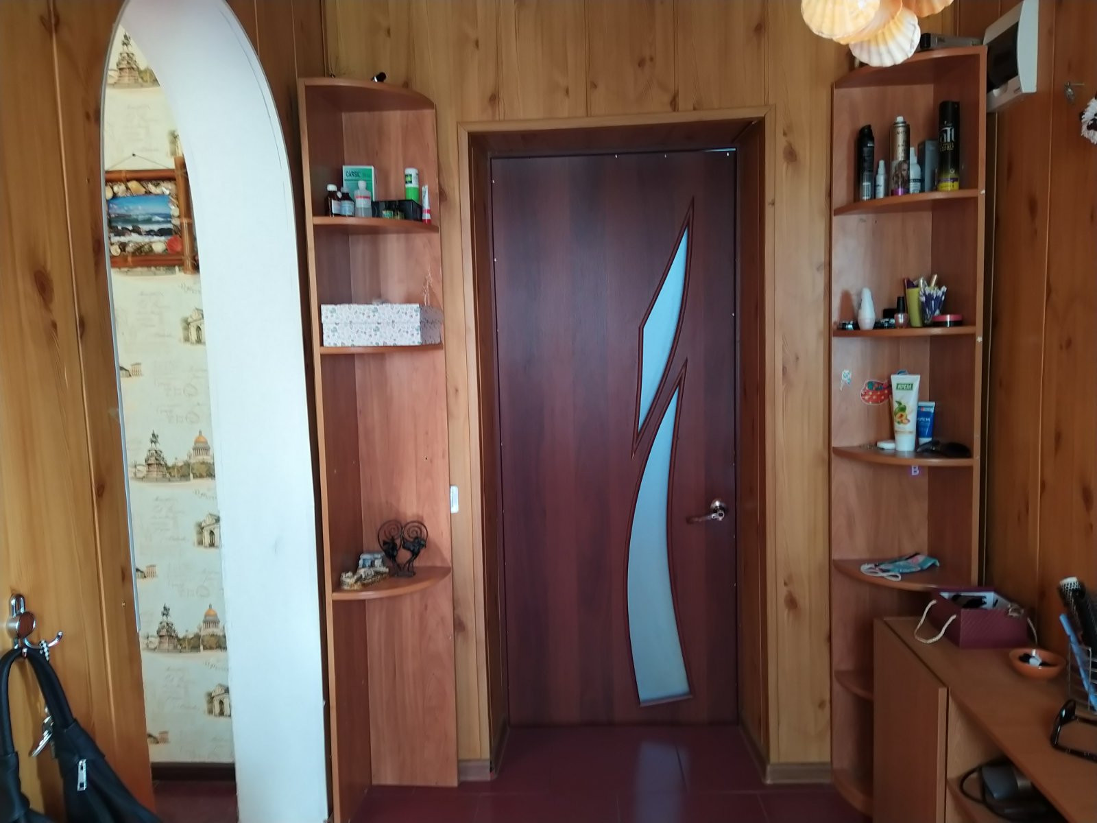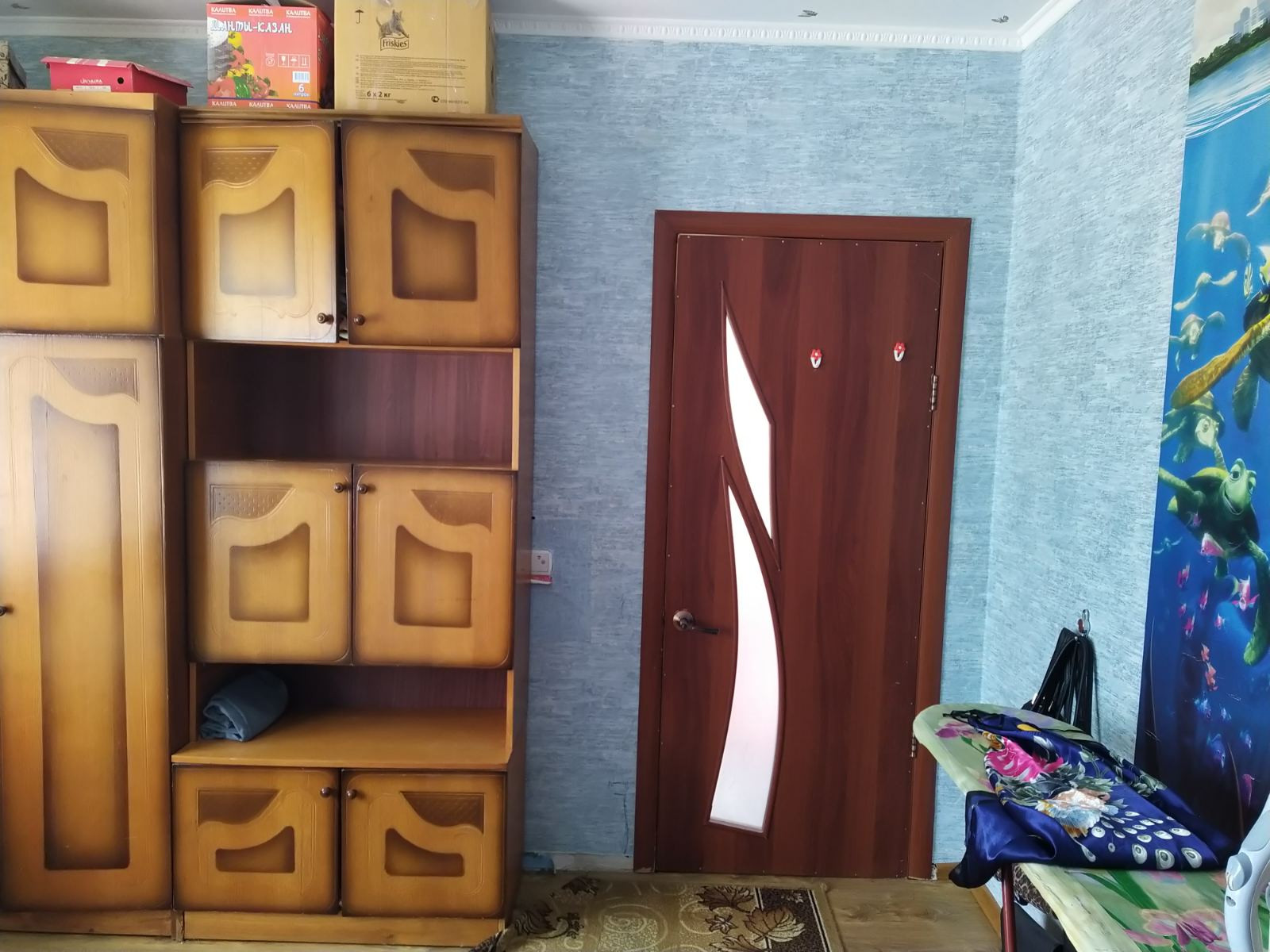 - на стенах наклеены обои,