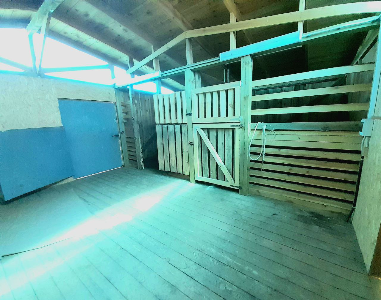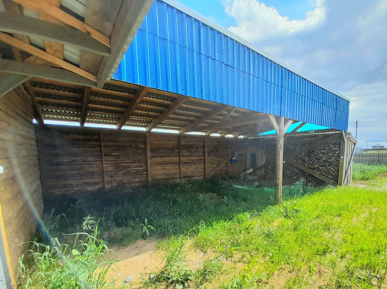 К дому на заднем дворе прилегает летняя терраса для отдыха.Во дворе располагается дровенник и оборудованная конюшня с отапливаемым подсобным помещением и навесом.