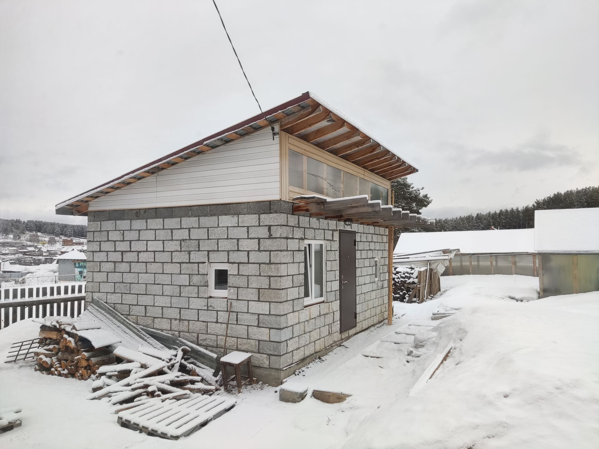 Отдельно стоящая блочная баня.