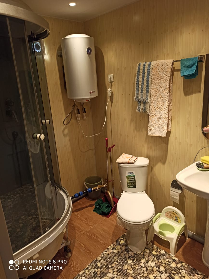 В доме небольшая современная кирпичная печь на угле, сан. узел, своя скважина с насосной станцией. Техническая вода для полива, мытья посуды, бани и сан. узла есть постоянно. Питьевую берем на роднике. Вдоль забора протянут центральный водопровод, при желании можно завести прямо в дом. Дом стоит на участке 11 соток, 3 (три) из которых прекрасный огород, на 8-ми стоит дом 8х4 с мансардным этажом (постройка 2018 года, материал брус), баня 6х4 с комнатой отдыха (постройка 2022 года, материал брус), углярка (с углем) + стайка под садовый инструмент + навес (постройка 2022 года, каркас дерево, сайдинг). Баня + углярка + навес + стайка, все под одной крышей на одной плите.