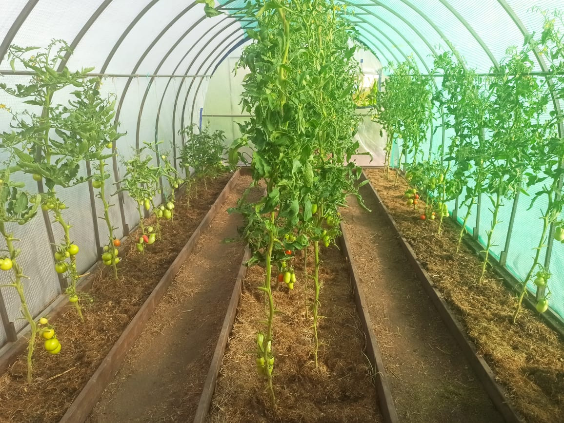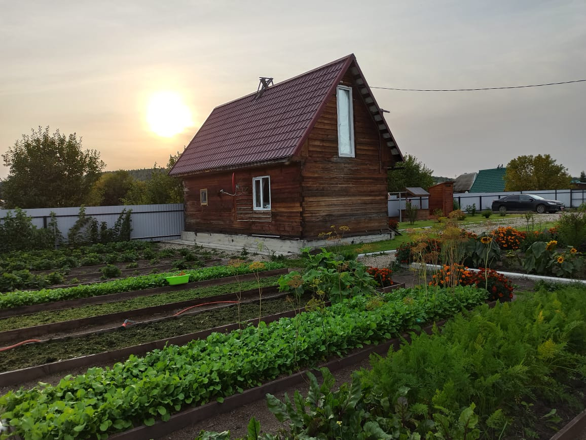- 11 грядок, 2 теплицы 6х3 м, дорожки проложены черной тканью и отсыпаны опилками (травы нет), к каждой грядке подведена вода. Установлена емкость 1 м3 для отстоянной теплой воды;