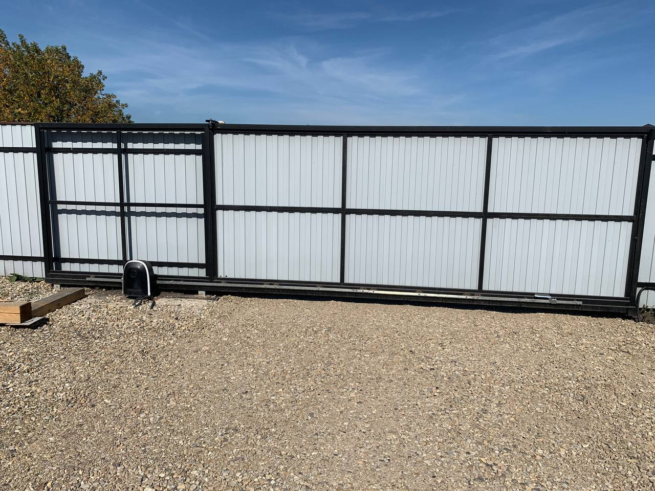 Новый забор из проф. листа по периметру участка + автоматические откатные ворота 4 метра.