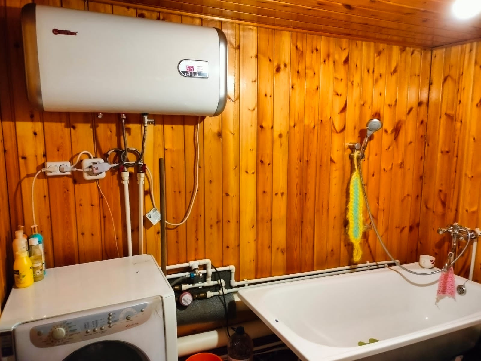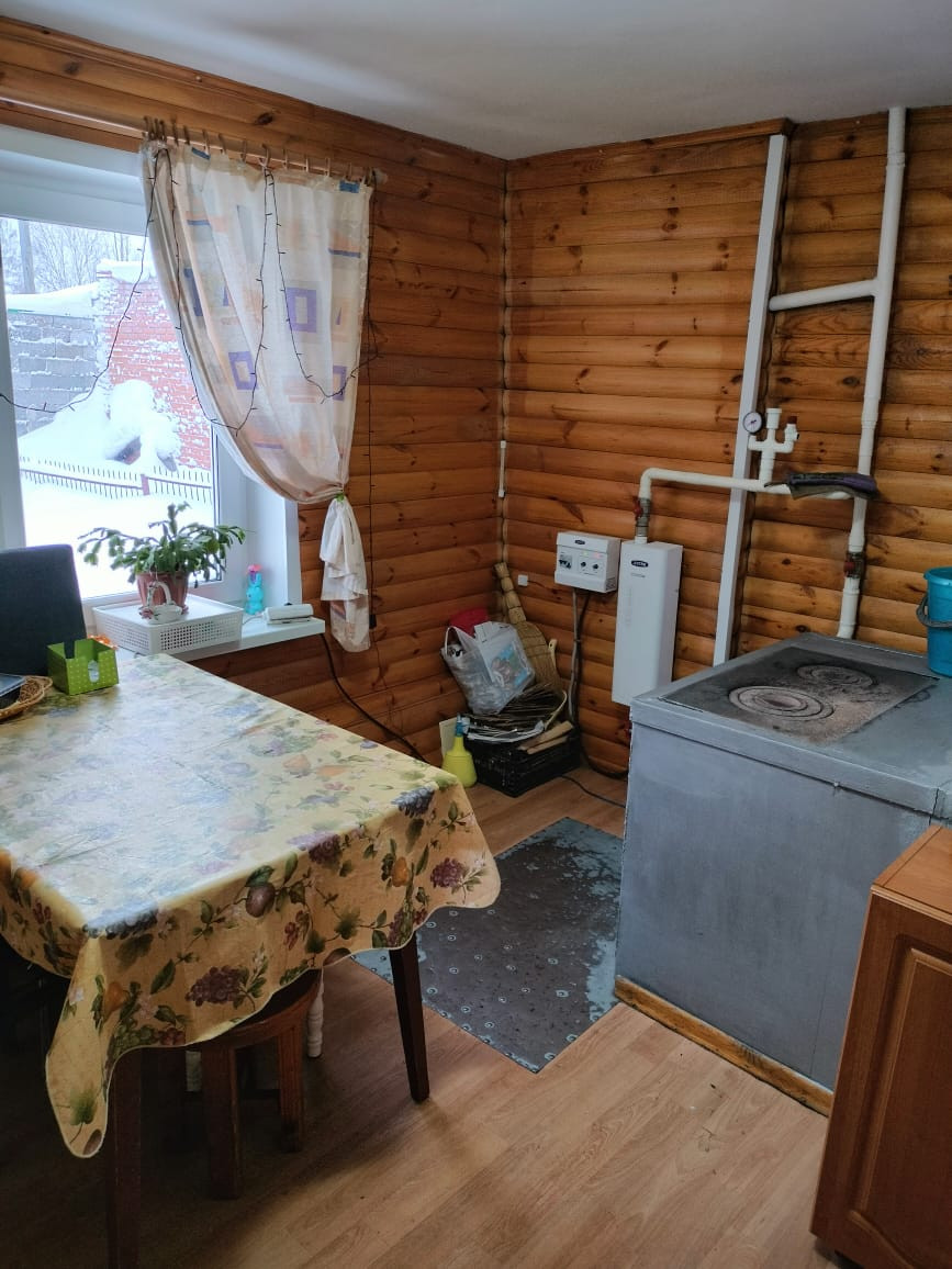 2 вида отопления:электрокотел и печное. Бойлер на 100л. Сан.узел в доме.