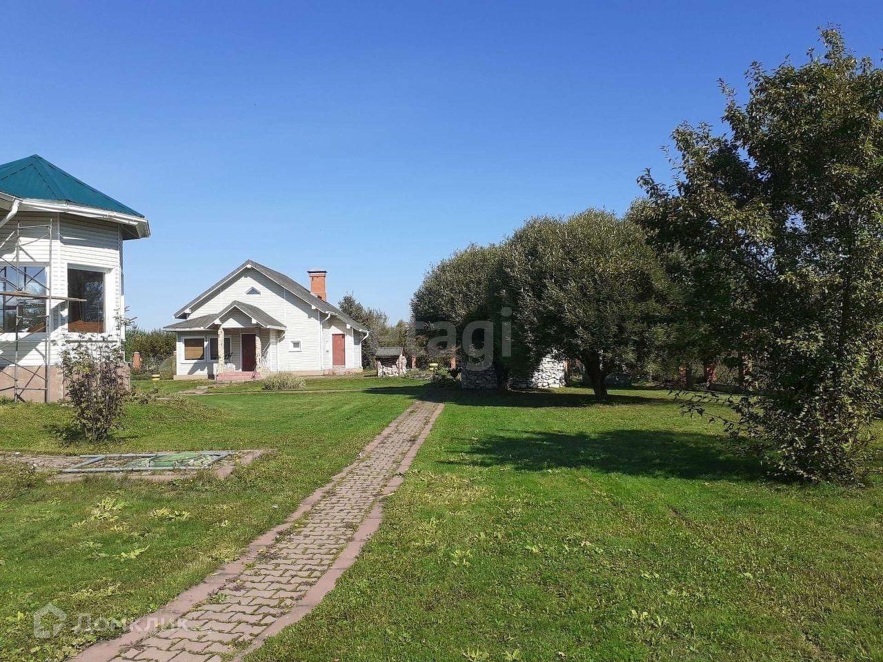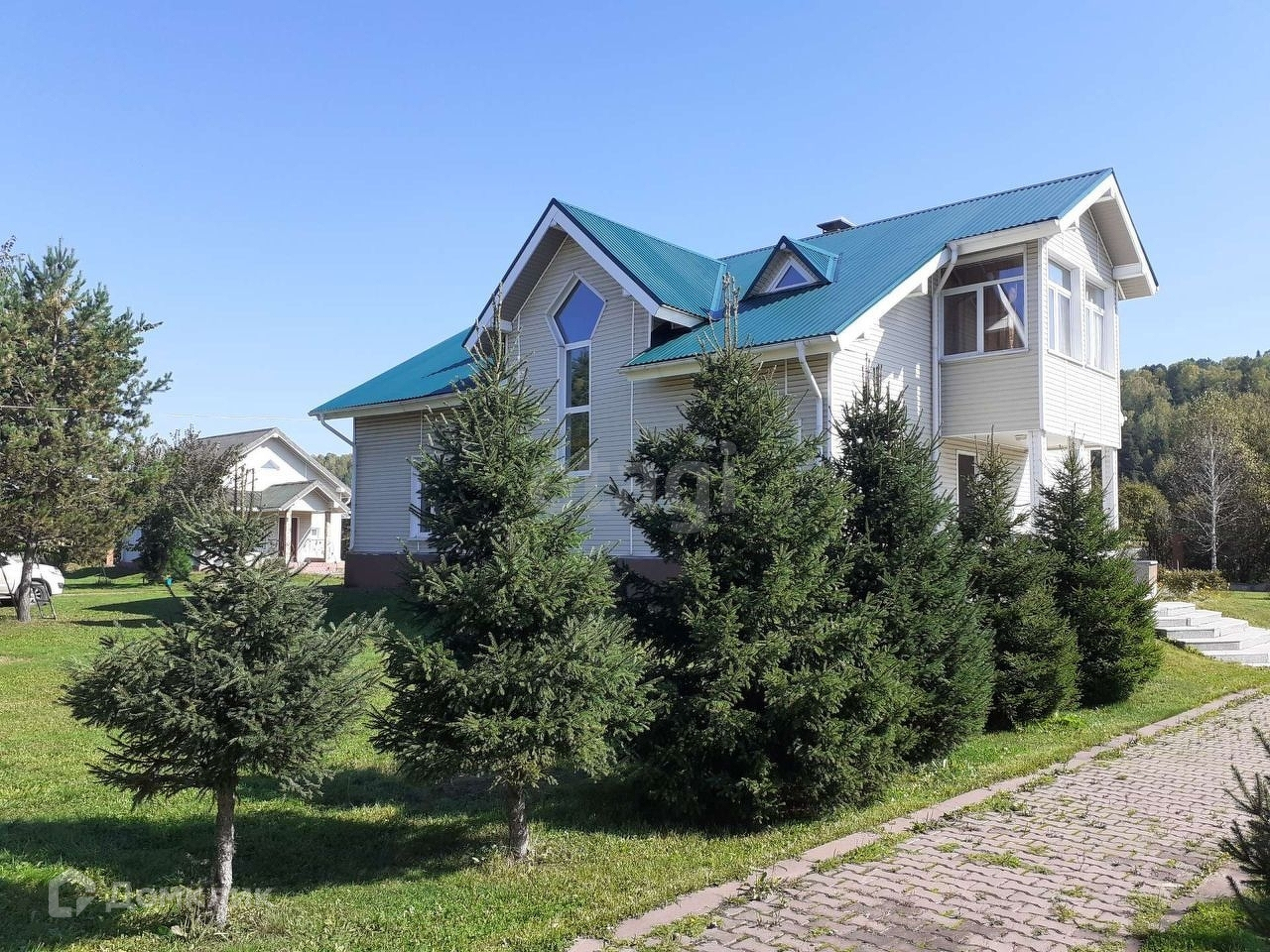 Все дорожки вымощны тротуарной плиткой.