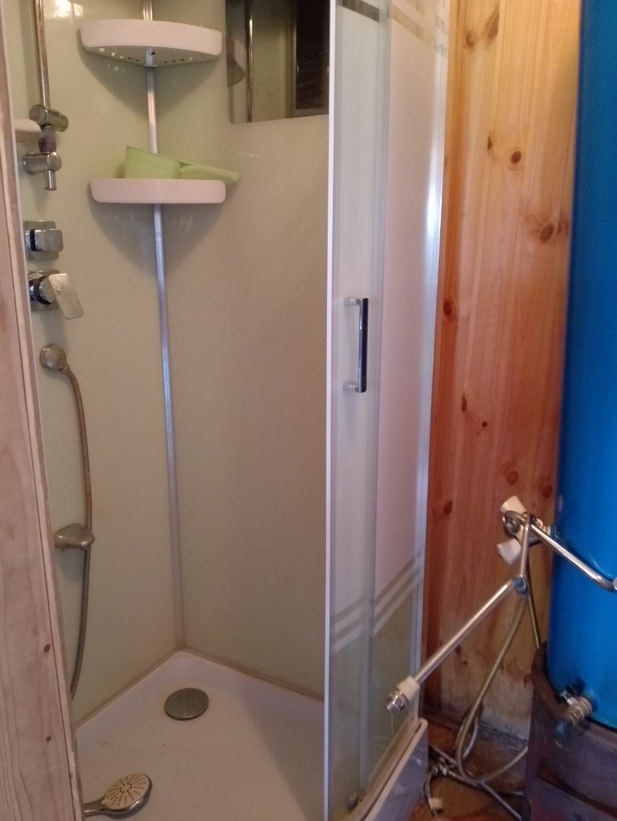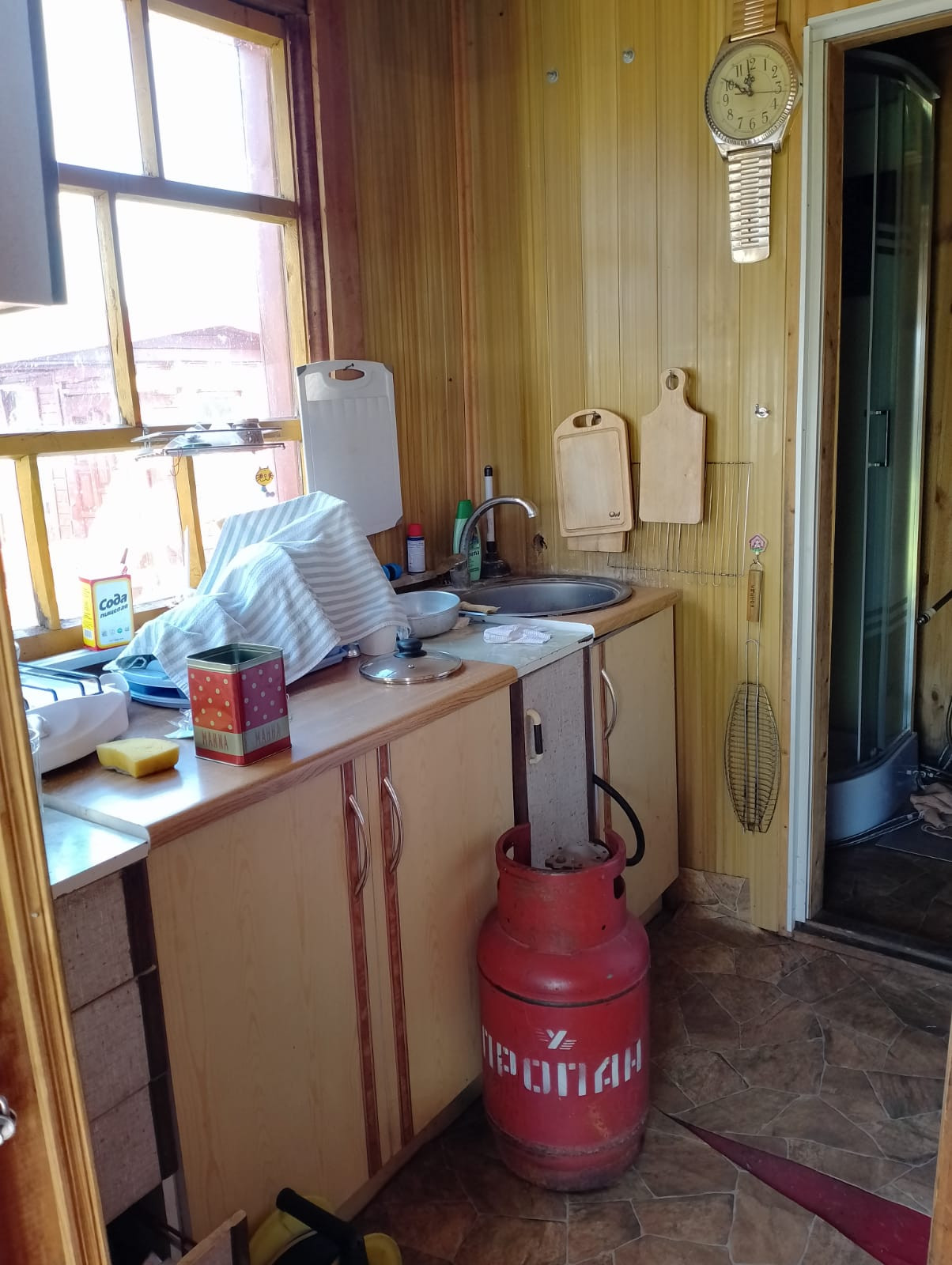 На участке есть еще одноэтажный дом :  кухня, комната, санузел, душ. Газовые баллоны (2 х 50 л).  бойлер на 50 литров.