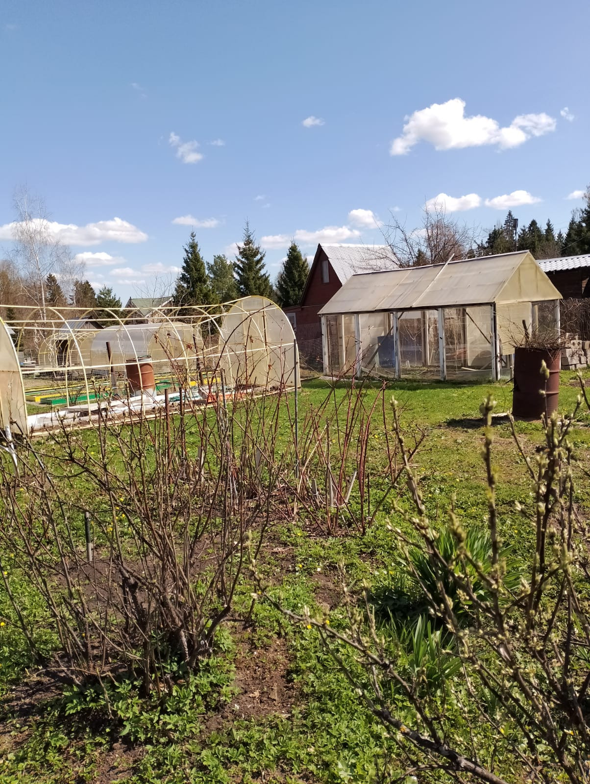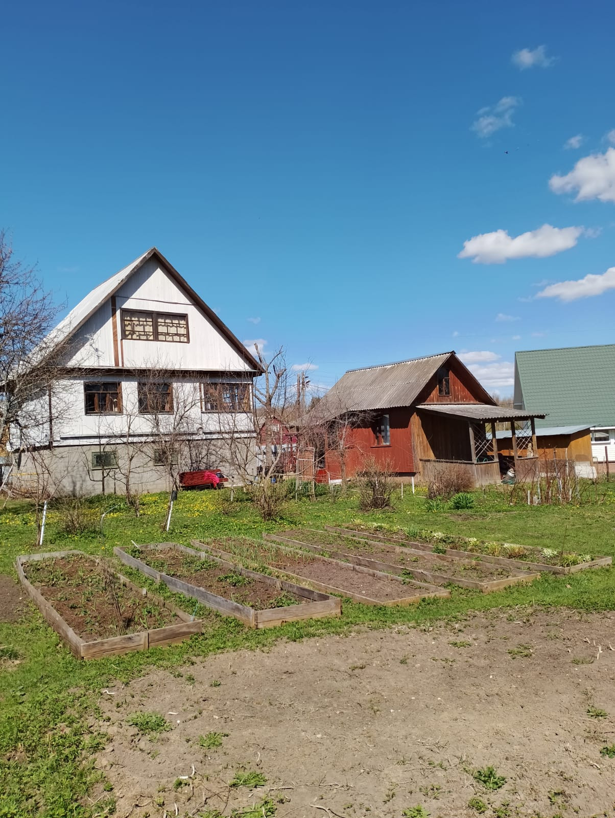 Участок ухожен и разбит на грядки. На участке  теплицы. Есть плодовые деревья и кусты.