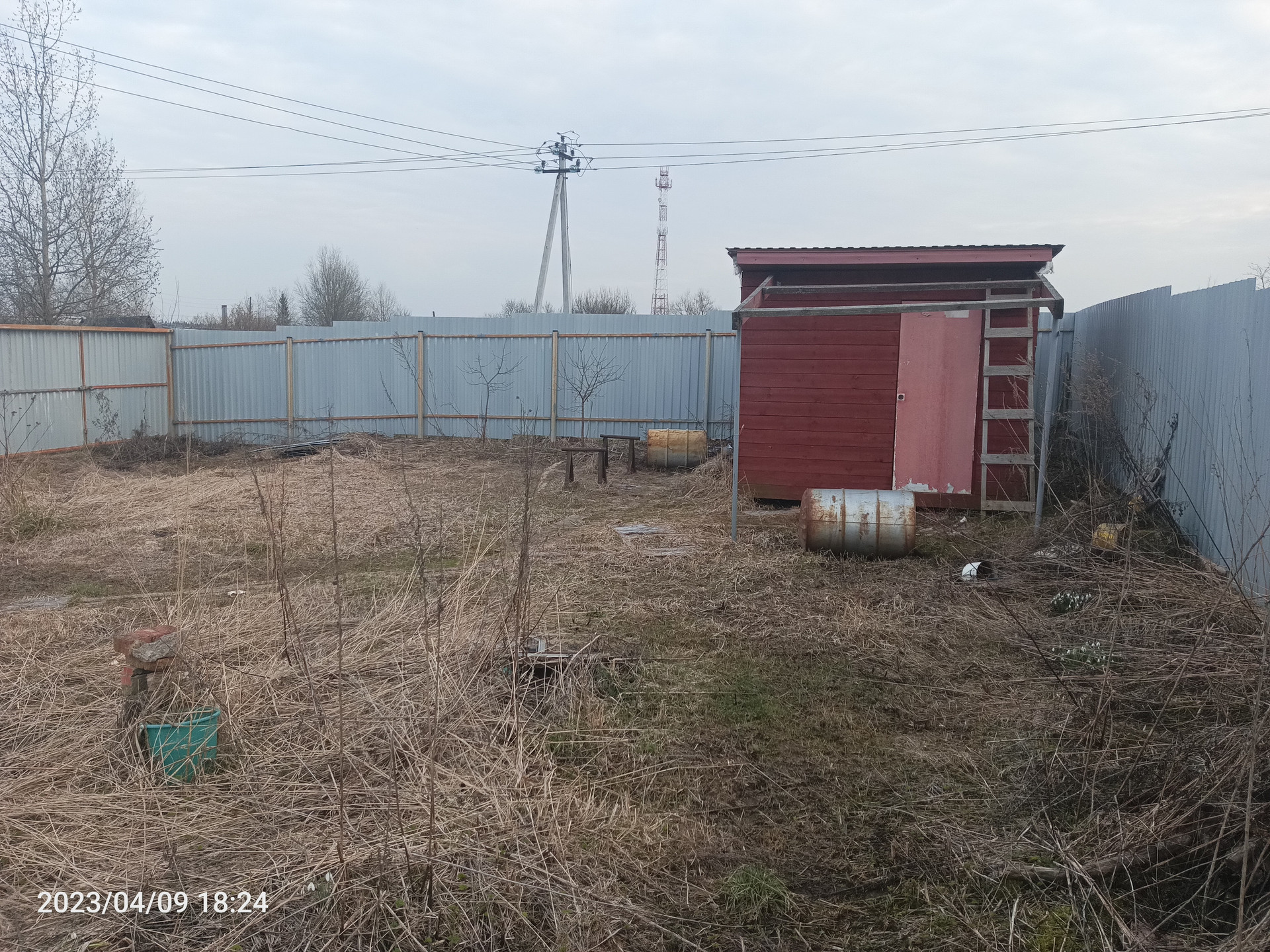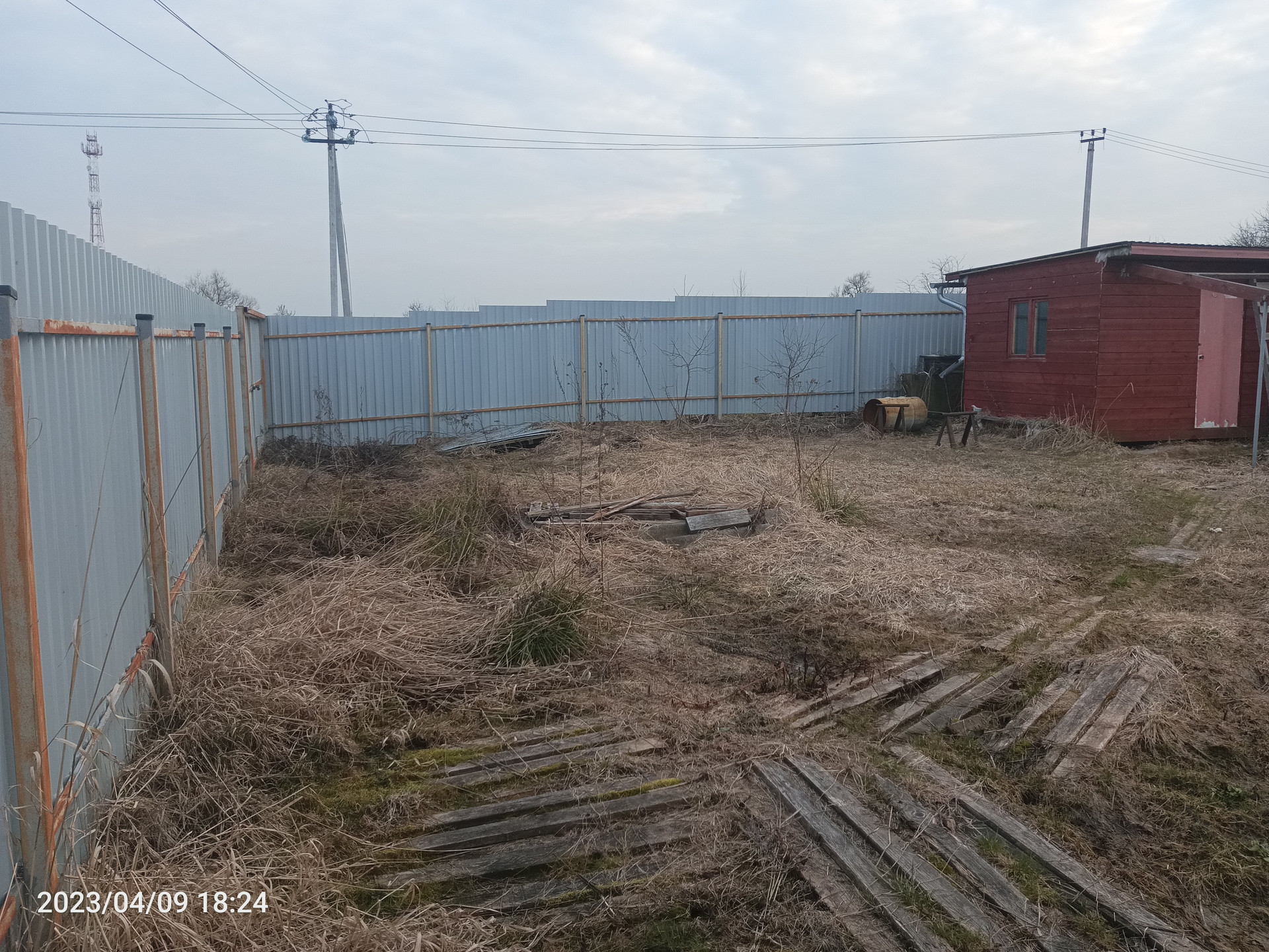 Участок расположен непосредственно в село Костино. Рядом магазины, остановки и ж/д платформа. Огорожен по периметру забором из металлопрофиля, есть ворота. Подключено электричество, счётчик на столбе. Построена бытовка 3х3. По документам есть номер дома. Категория земель: земли населённых пунктов, разрешённое использование: ведение личного подсобного хозяйства (из свидетельства о гос. регистрации права). Продавать не торопимся.
