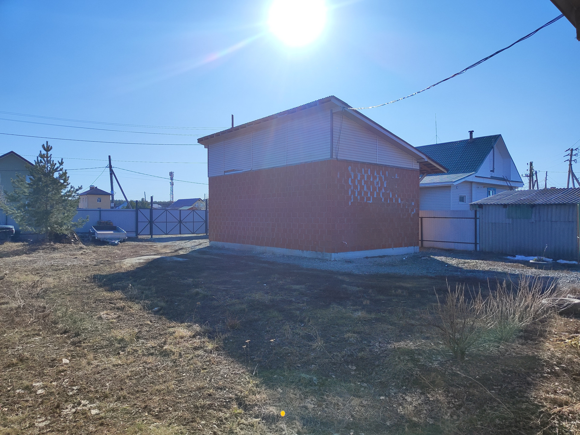 ГАРАЖ-  кирпичный 10 х 6 высота потолка 4м, чердак оборудован стеллажами. При желании можно пристроить дом или переделать гараж в дом перегородки можно ставить в любом месте, так как цельномонолитная плита. Окна и двери установить можно также в любом месте. Плита с запасом по прочности, есть фотографии строительства .