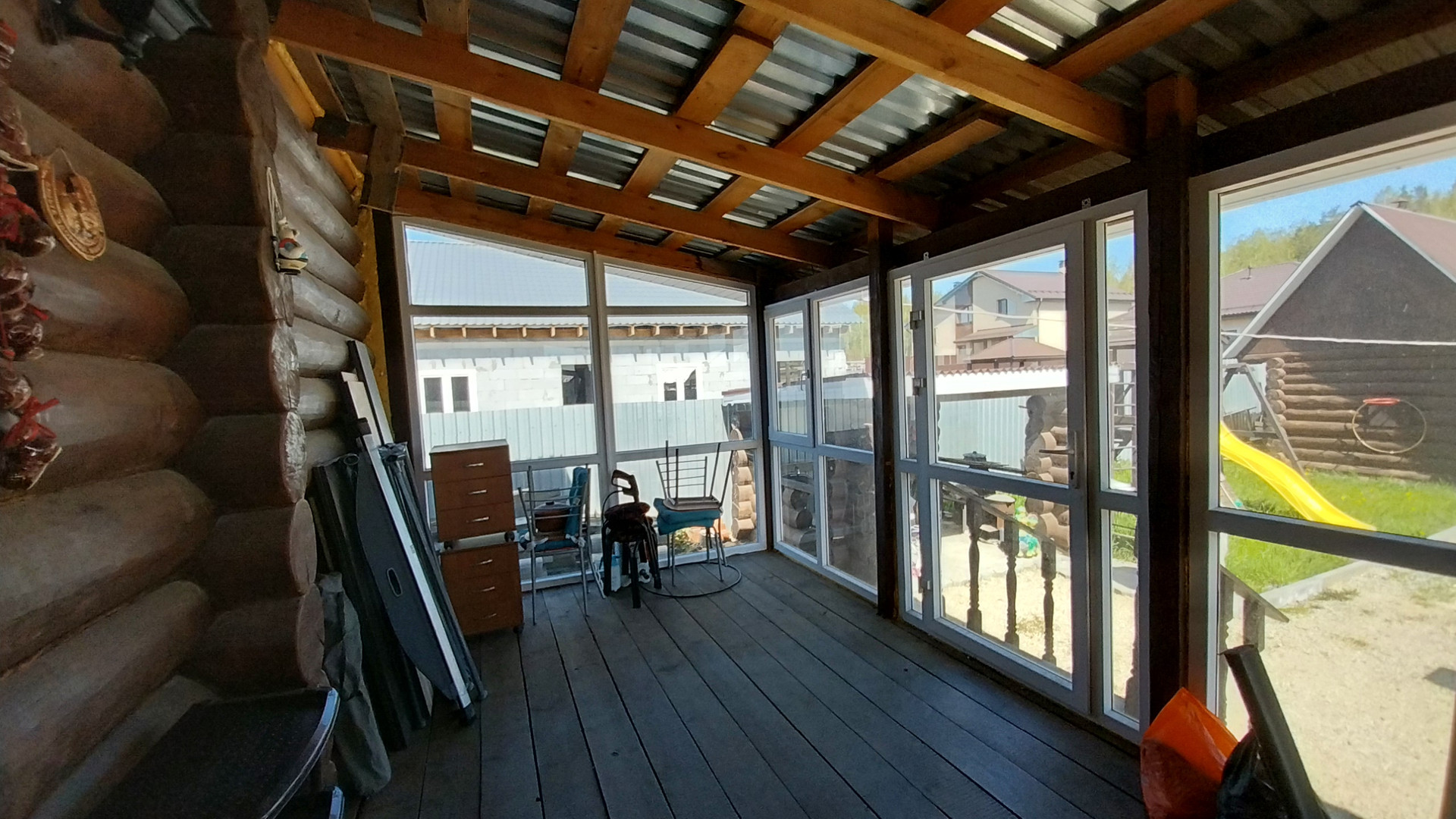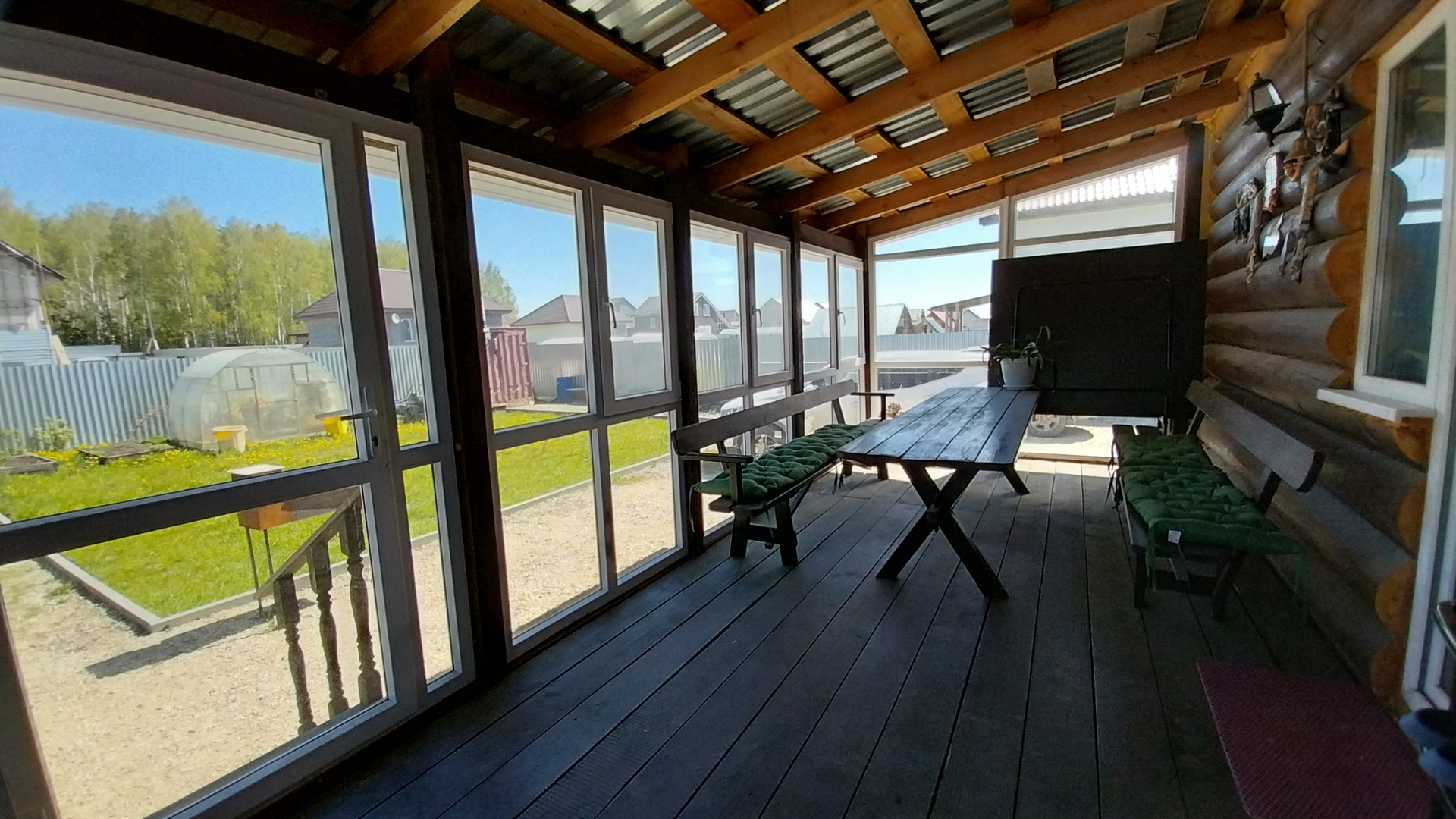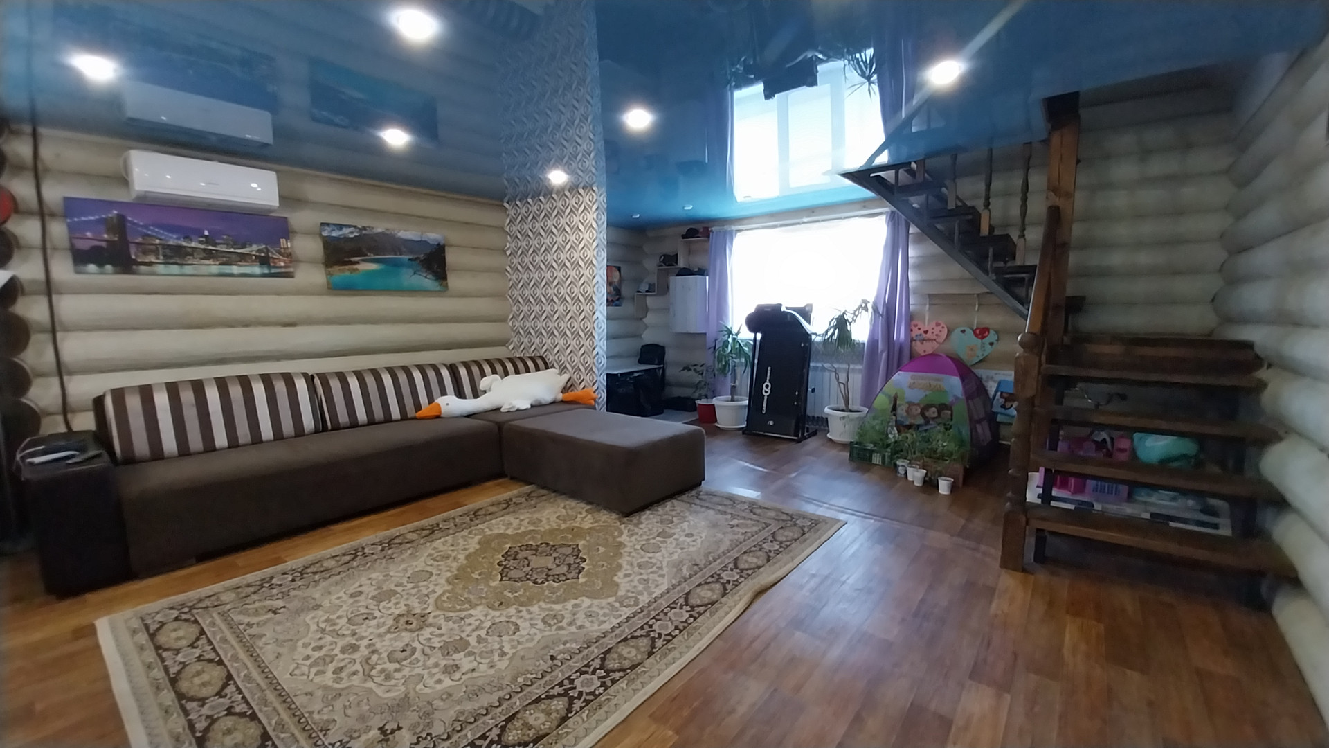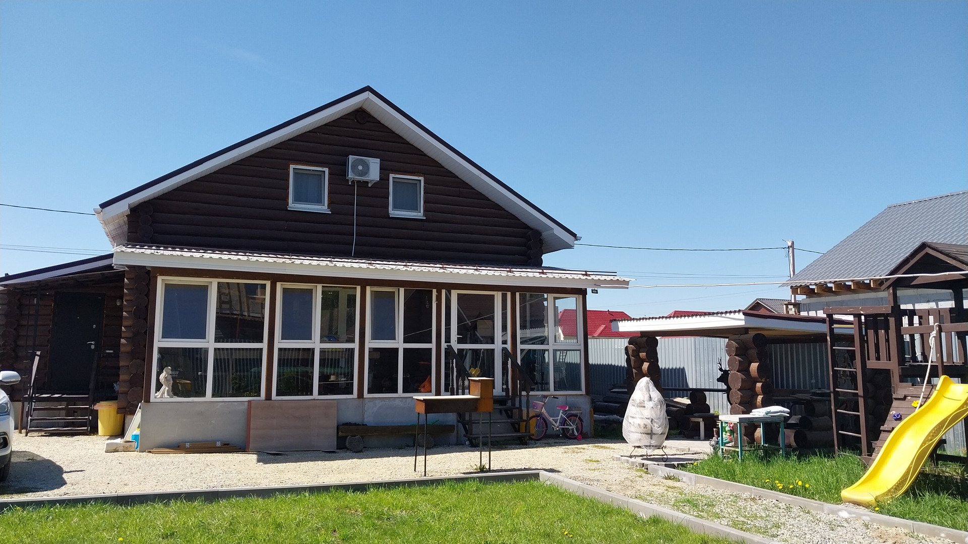 Продаётся дом площадью 167 квадратных метров, выполненный из оцилиндрованного бревна. Дом имеет два этажа. На первом этаже располагаются тёплая входная группа, просторная кухня-гостинаяс хорошим евроремомонтом  с выходом на террасу, санузел и котельная. Терраса утеплена пластиковыми стеклопакетами. На втором этаже находятся три спальные комнаты, просторный холл с гардеробной и санузлом. В доме установлены системы видеонаблюдения и кабельного телевидения и интернета из мебели оставим все по договоренности. Закрытый двор занимает семь соток. На территории двора расположены мангальная зона из натурального дерева, игровая площадка, новая баня и теплица. Также на участке имеется клубника, деревья, проведена отсыпка участка и уложен газон.