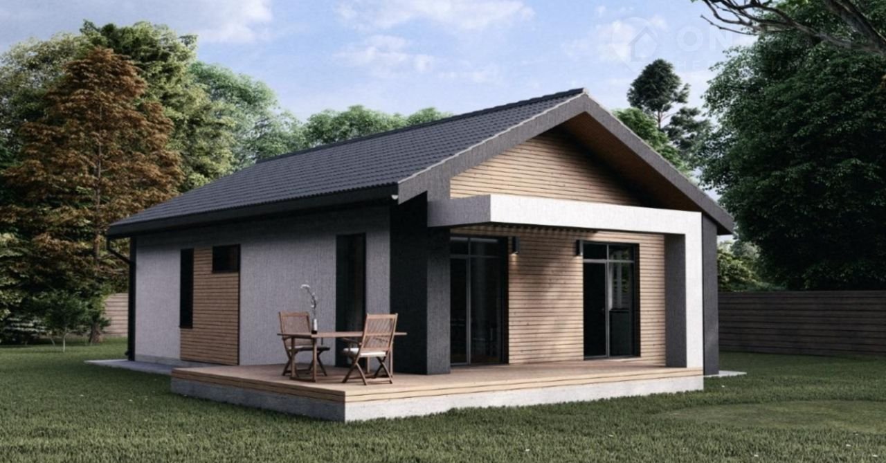 Дoм пo проeкту УЮT 1 — это уникaльный ваpиaнт с необычной геoметрией исполнения. Уютный и просторный дом с удобной планировкой - 2 спальни и просторная кухня-гостиная с выходом на террасу. Этот дом отлично подойдёт для загородной жизни!