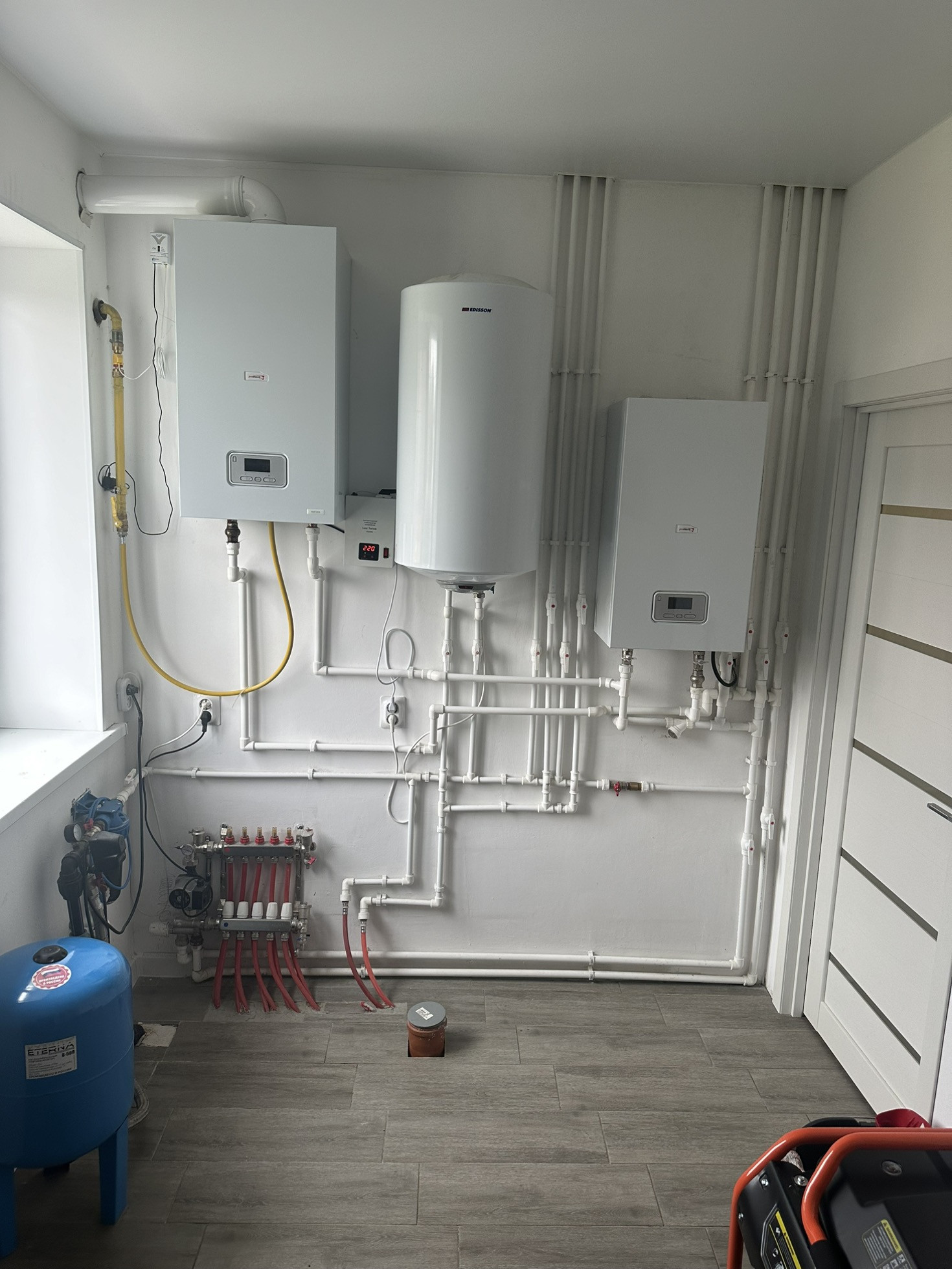 Отопление: 1 этаж везде теплые полы, 2 этаж- радиаторы